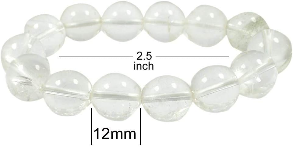Reiki Crystal Products Clear Quartz Bracelet 12 mm Round Bead Reiki Healing Crystal Bracelet for Unisex (Color : White)