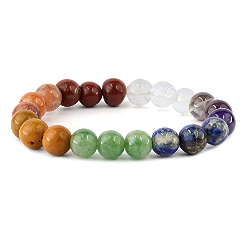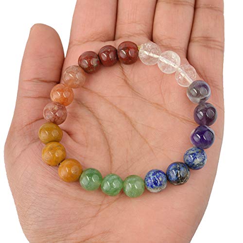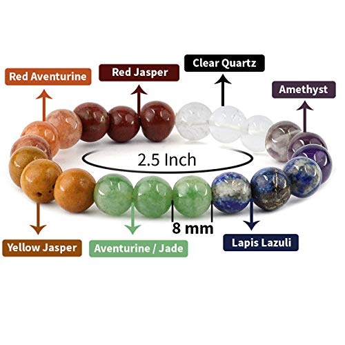 Natural 7 Chakra Bracelet 8 mm Crystal Stone Bracelet 3+3 Design 8 mm Round Shape for Reiki Healing and Crystal Healing Stones (Color : Multi)