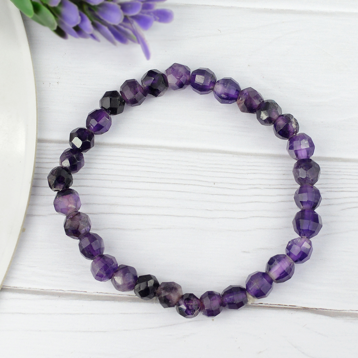 Reiki Crystal Products Natural Amethyst Bracelet Crystal Stone 6mm Faceted Bracelet for Reiki Healing and Crystal Healing Stones