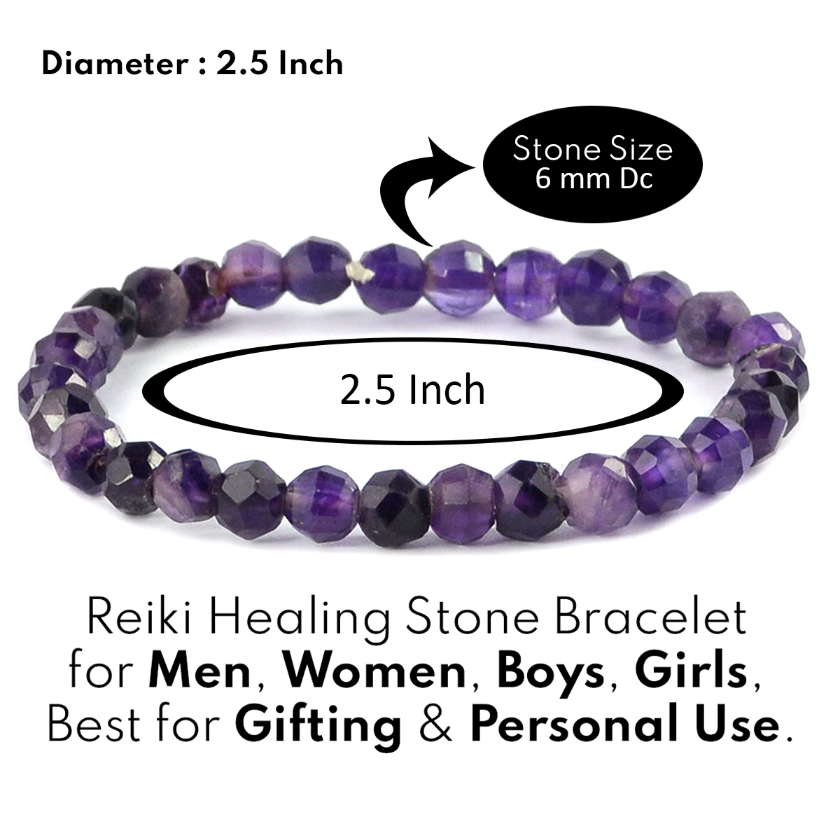 Stretchable Elastic Handmade Natural Crystal Stone Bracelet | Diameter : 2.5 Inch. | Stone Size 6 mm Faceted Beads. Charged By Reiki Grand Master & Vastu Expert