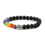 Reiki Crystal Products Natural Black Onyx Self Bracelet with 7 Chakra Buddha Head 8mm Round Bead Bra