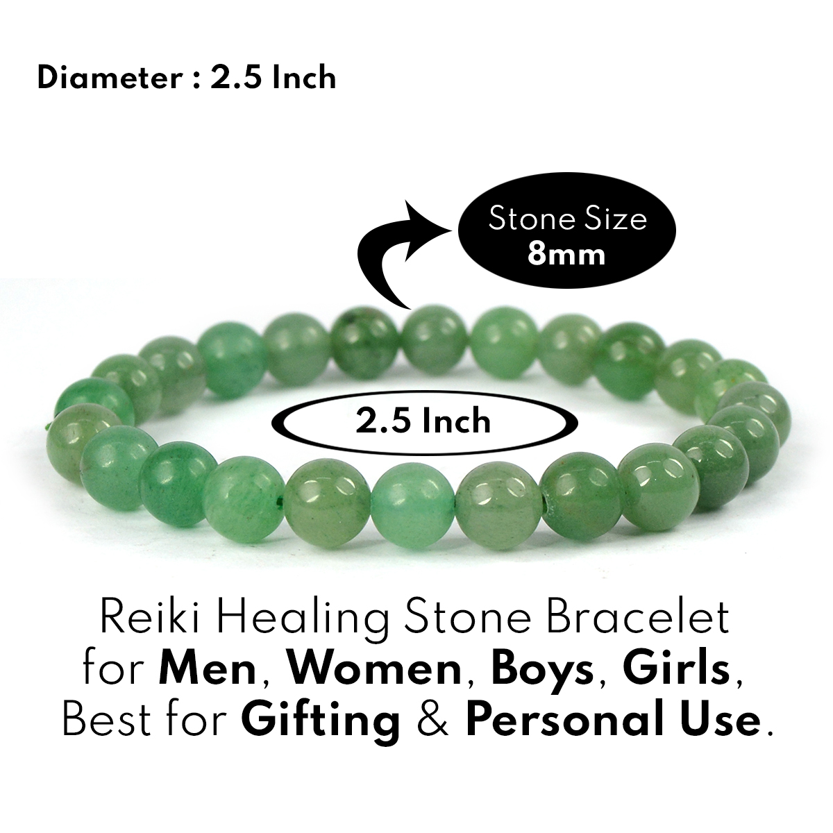 Stretchable Elastic Handmade Natural Crystal Stone Bracelet | Diameter : 2.5 Inch. | Stone Size 8 mm | Shape - Round. Charged By Reiki Grand Master & Vastu Expert