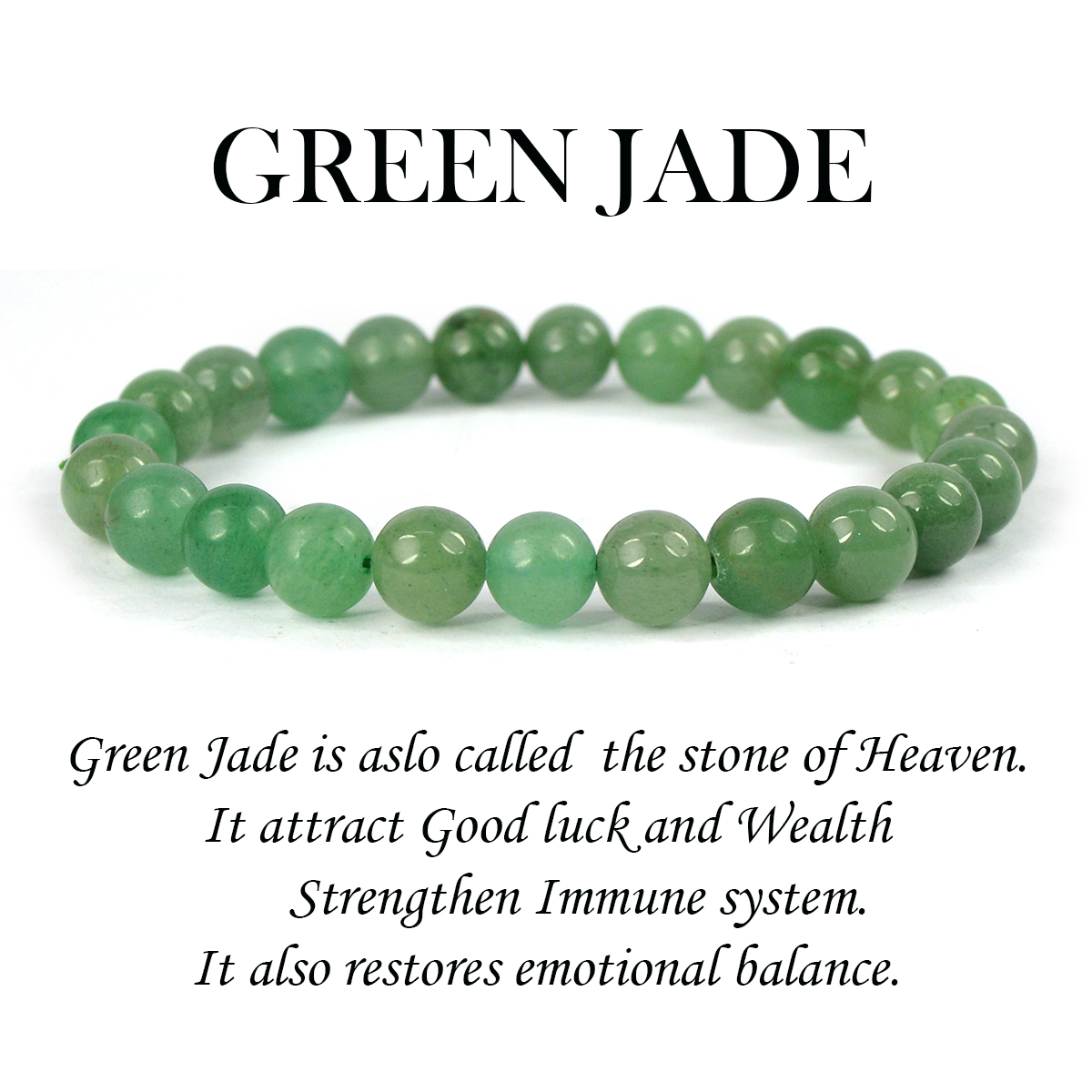 Reiki Crystal Products Natural Green Jade Bracelet Crystal Stone 8mm Round Bead Bracelet for Reiki H