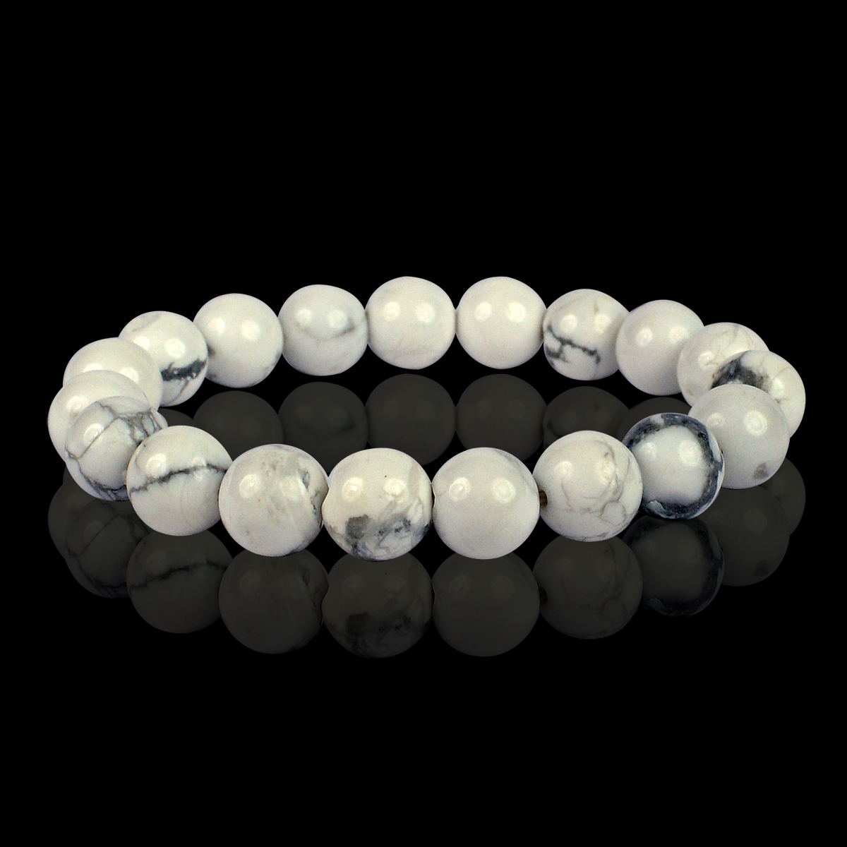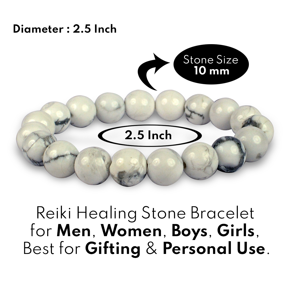 Reiki Crystal Products Natural Howlite Bracelet Crystal Stone 10mm Round Bead Bracelet for Reiki Healing and Crystal Healing Stones