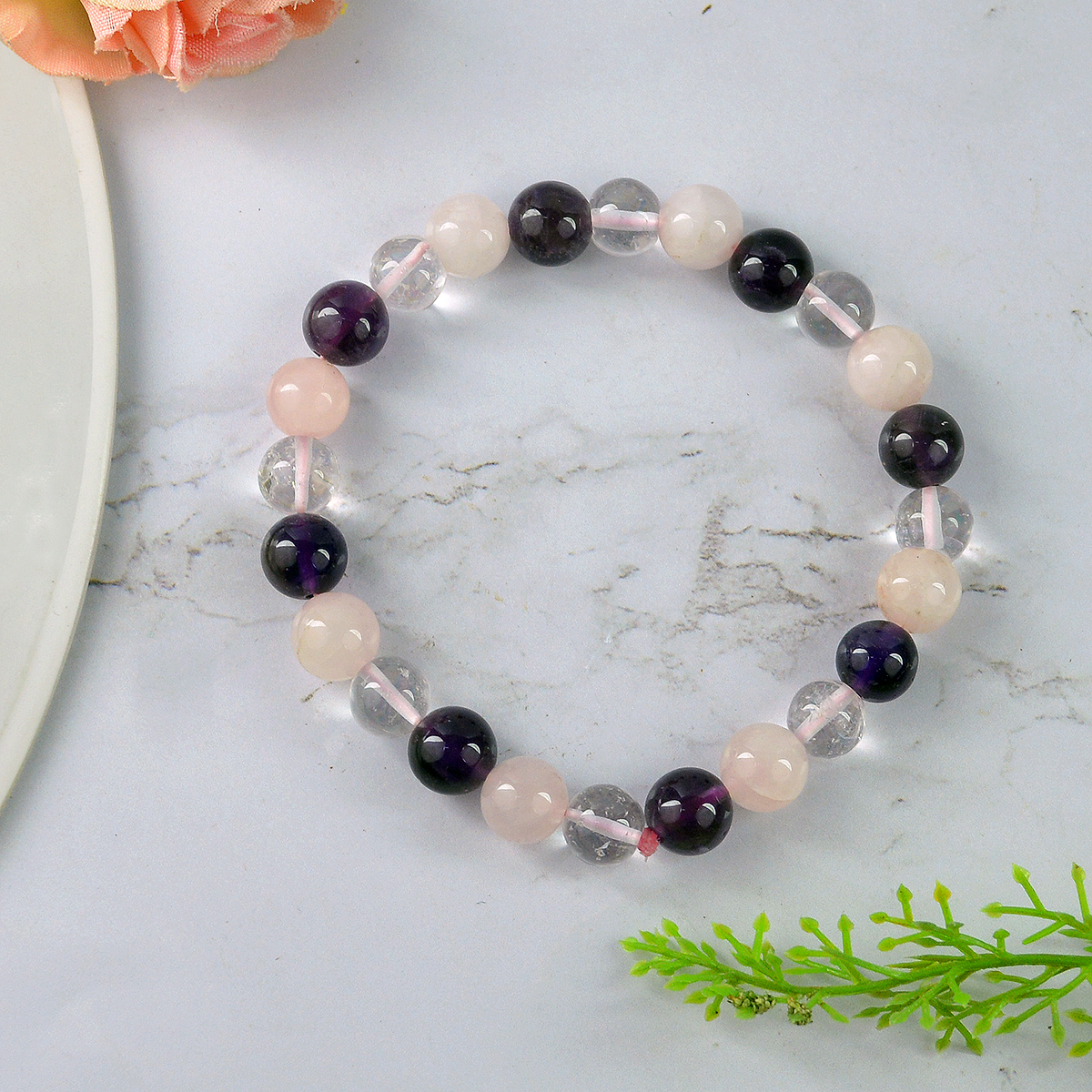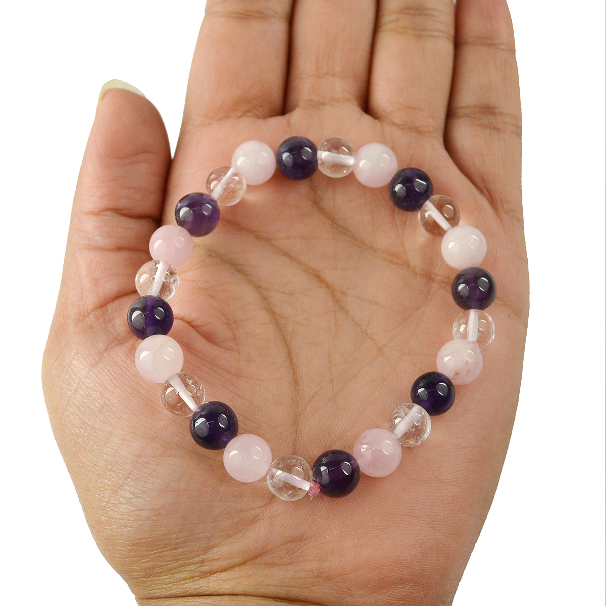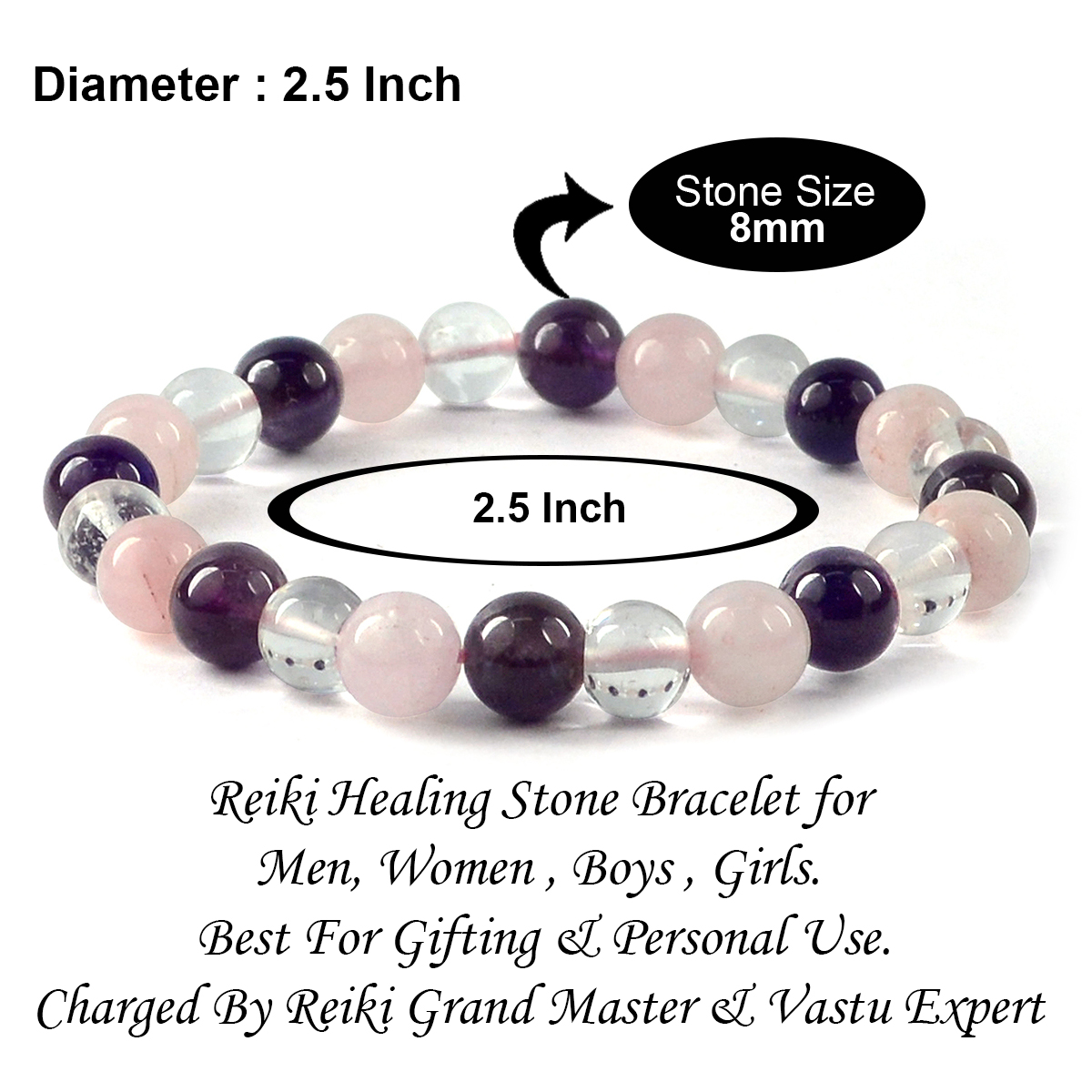 Stretchable Elastic Handmade Natural Crystal Stone Bracelet | Diameter : 2.5 Inch. | Stone Size 8 mm | Shape - Round. Charged By Reiki Grand Master & Vastu Expert