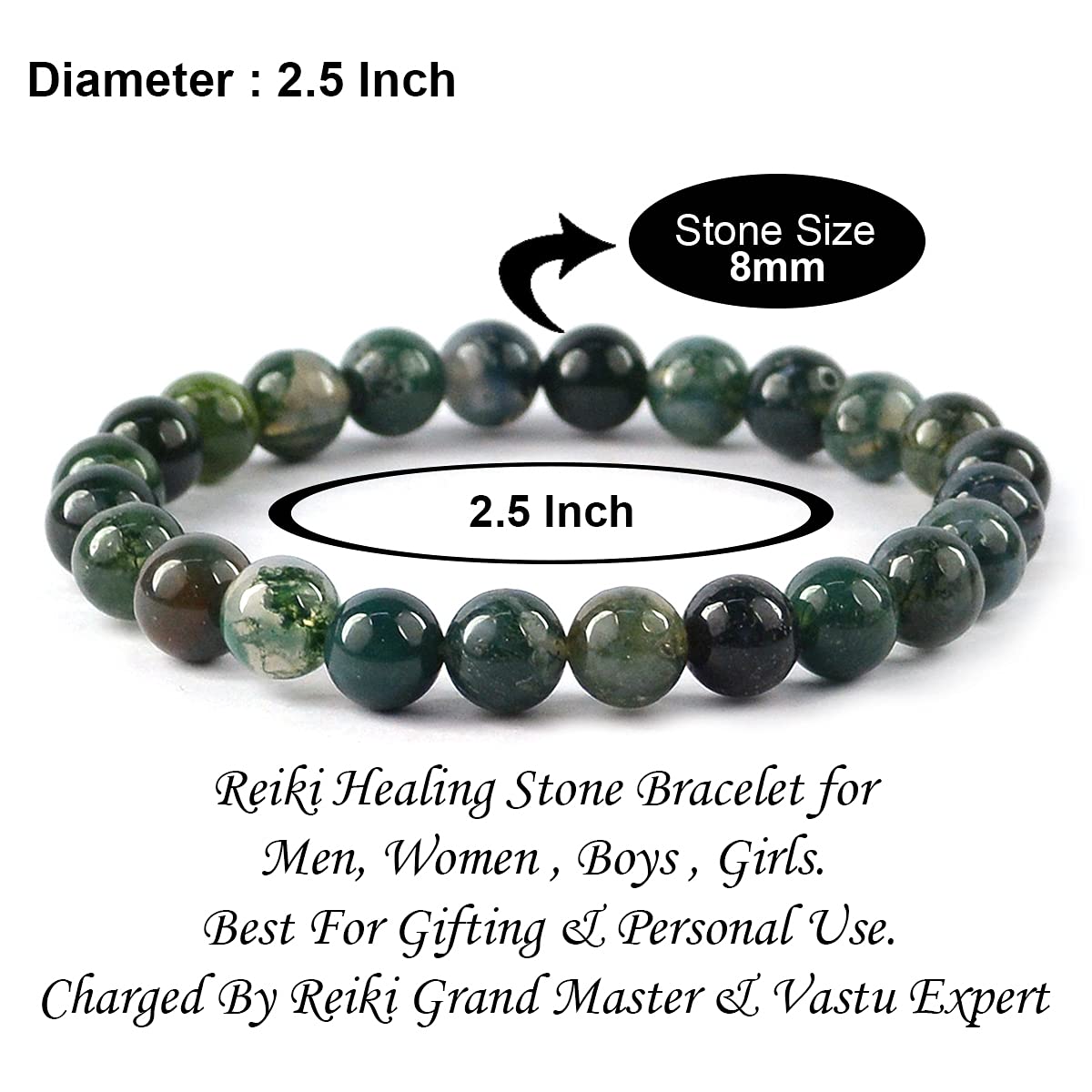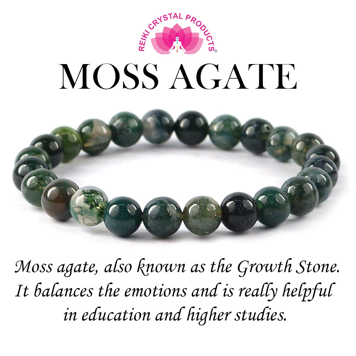 Reiki Crystal Products Natural Moss Agate Bracelet Moss Agate Stone 8 mm Bracelet Crystal Stone Bracelet Gemstone Beads Reiki Healing Bracelets