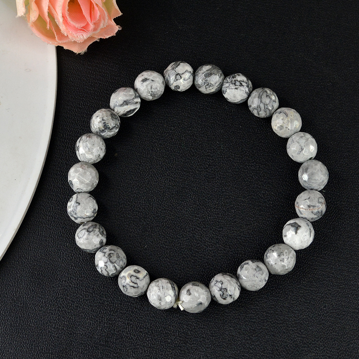 Reiki Crystal Products Natural Multi Picasso Jasper Bracelet Crystal Stone 8mm Faceted Bracelet for Reiki Healing and Crystal Healing Stones