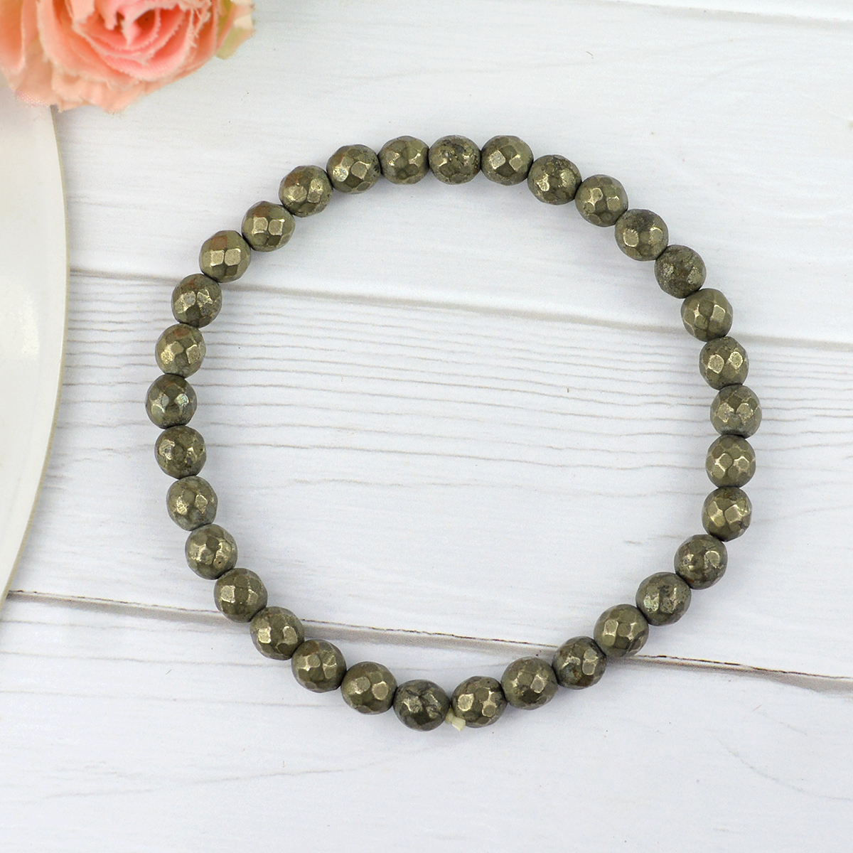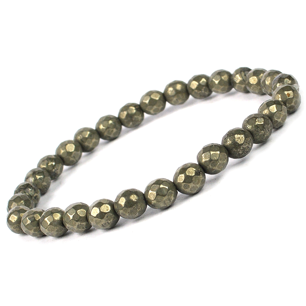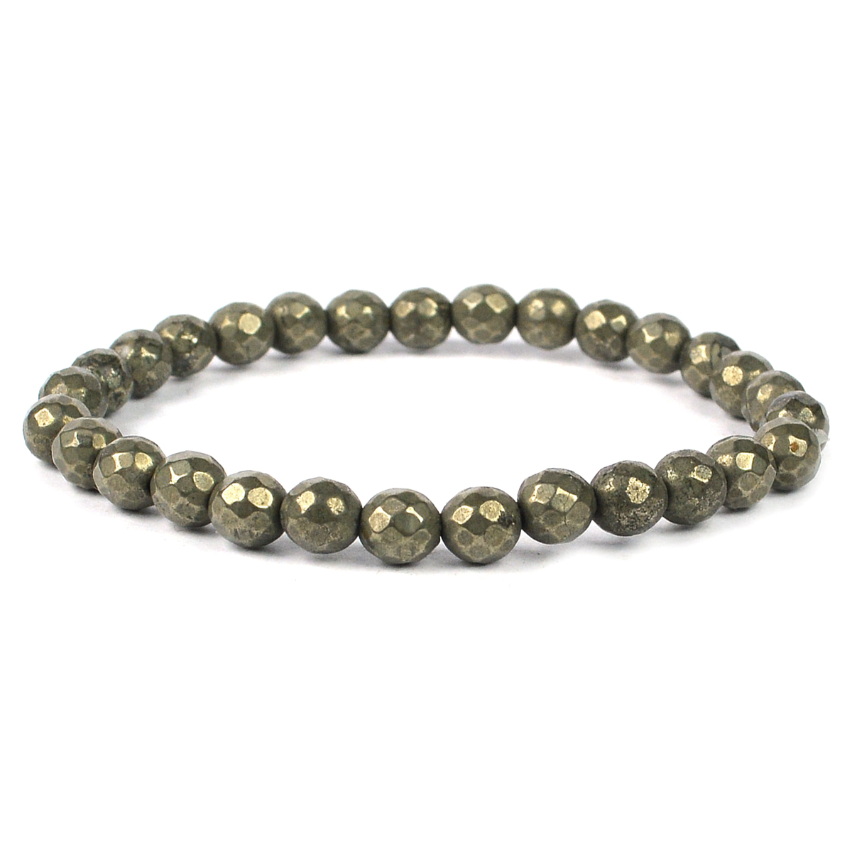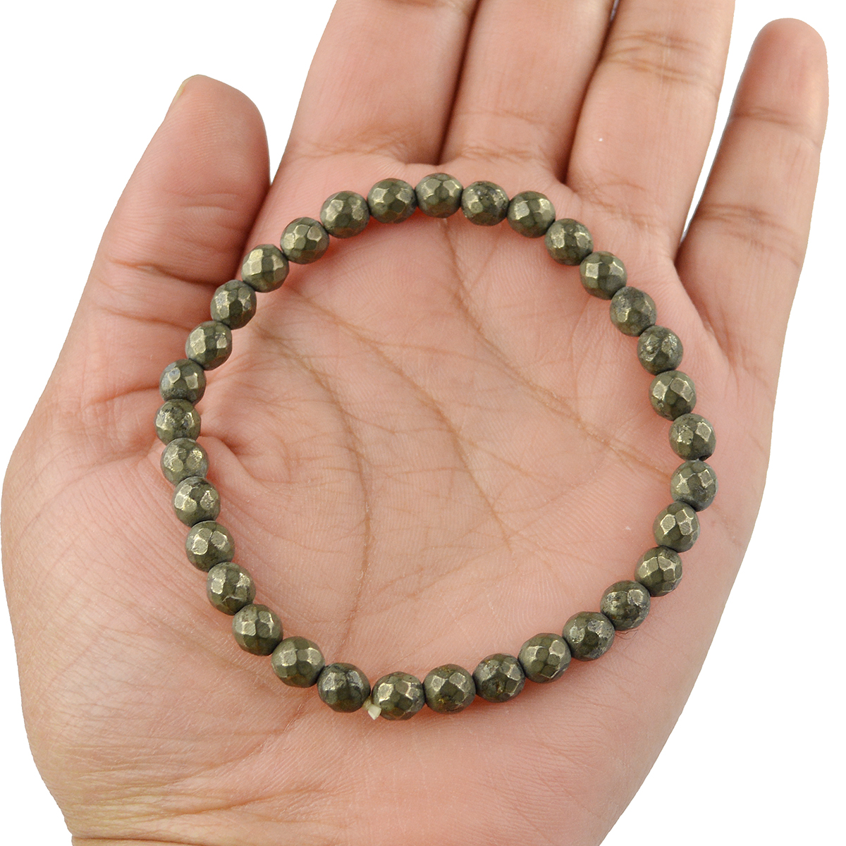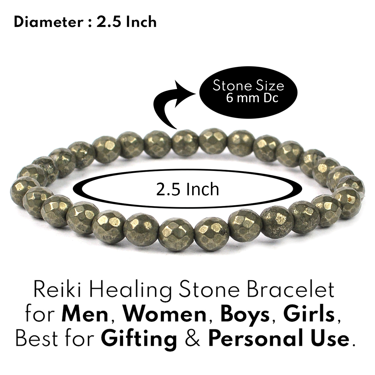 Reiki Crystal Products Natural Pyrite Bracelet Crystal Stone 6mm Faceted Bracelet for Reiki Healing and Crystal Healing Stones