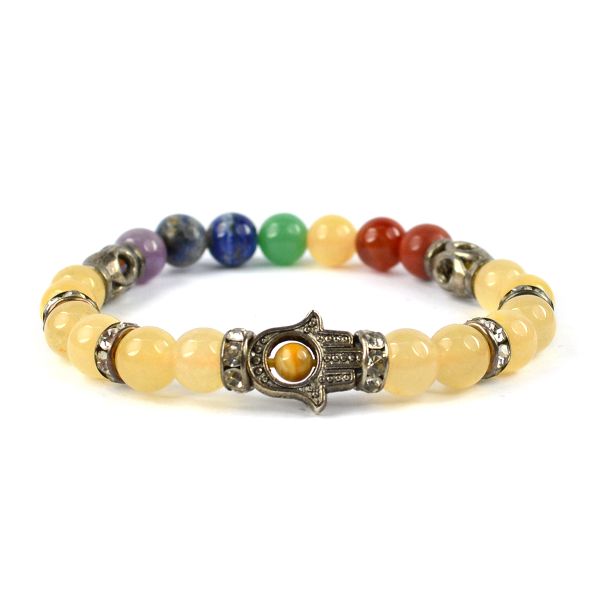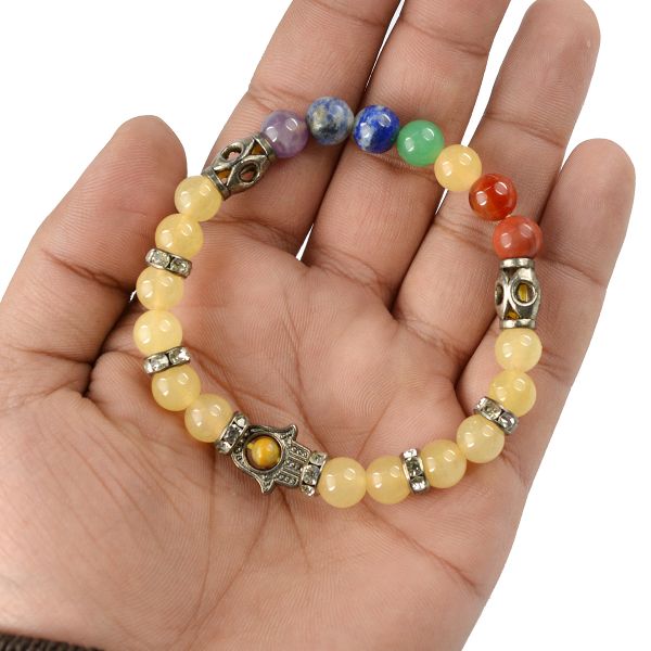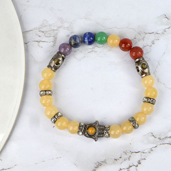 Reiki Crystal Products Natural Yellow Aventurine Bracelet with 7 Chakra Buddha Head 8mm Round Bead B