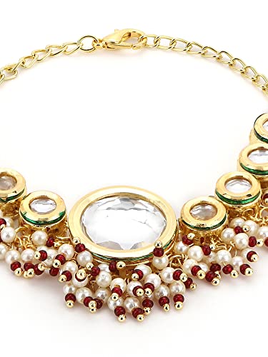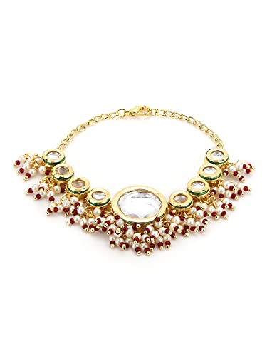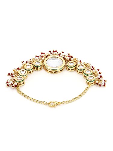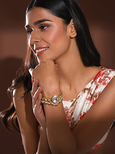 Ruby Raang Women's Mixed Metal Artificial Kundan Bracelets - Traditional Jewellery Set for Women (Gold)