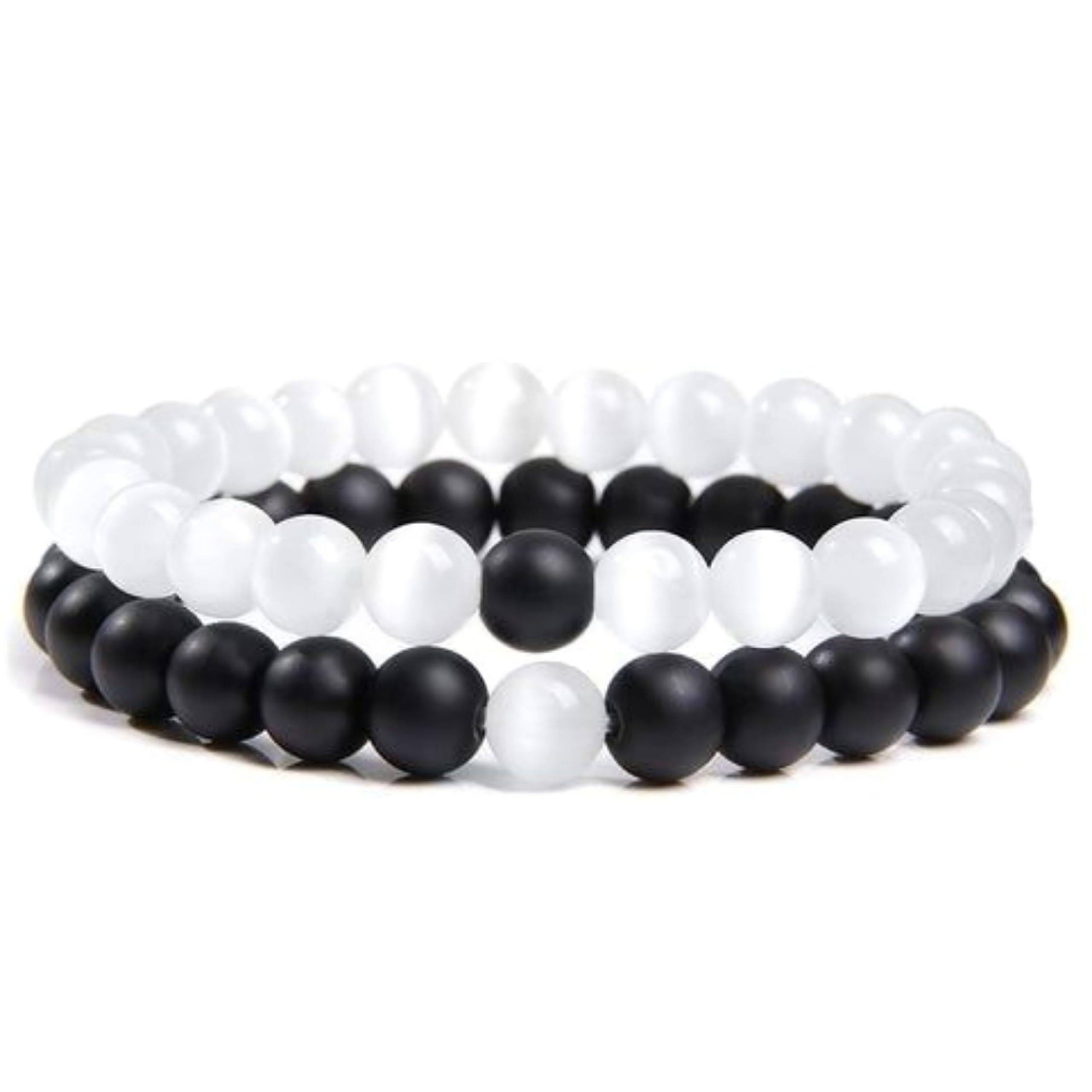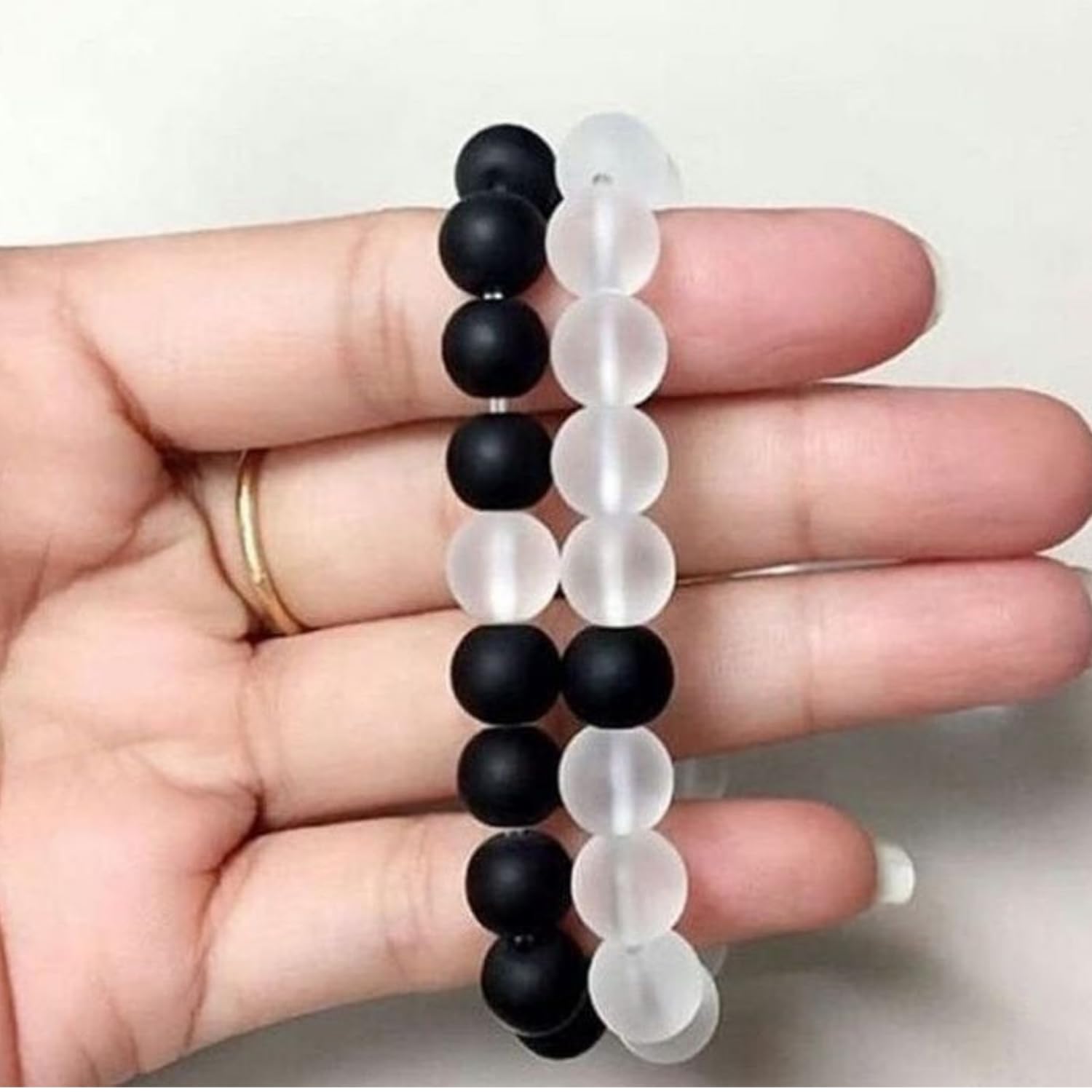 Sukhad Couple-Combo Matching Best Friend Relationship Natural Multi Layer Tiple Protection Stone Beads Magnetic Bracelets. For unisex adult. Black and white beaded bracelets are a classic jewelry style that can be dressed up or down. They can be worn on their own or stacked with other bracelets. They are also a popular choice for couples or friends who want to wear matching jewelry. Here are some other details about the bracelets in the image: The beads appear to be made of agate a type of quartz that comes in a variety of colors. Agate is a popular choice for jewelry because it is durable and has a beautiful luster. The bracelets are a medium width which is flattering on most wrist sizes. The knot closure is a simple and secure way to keep the bracelets on your wrist. If you are interested in purchasing a black and white beaded bracelet there are many options available online and in stores. You can choose from a variety of materials colors and styles to find a bracelet that you love.