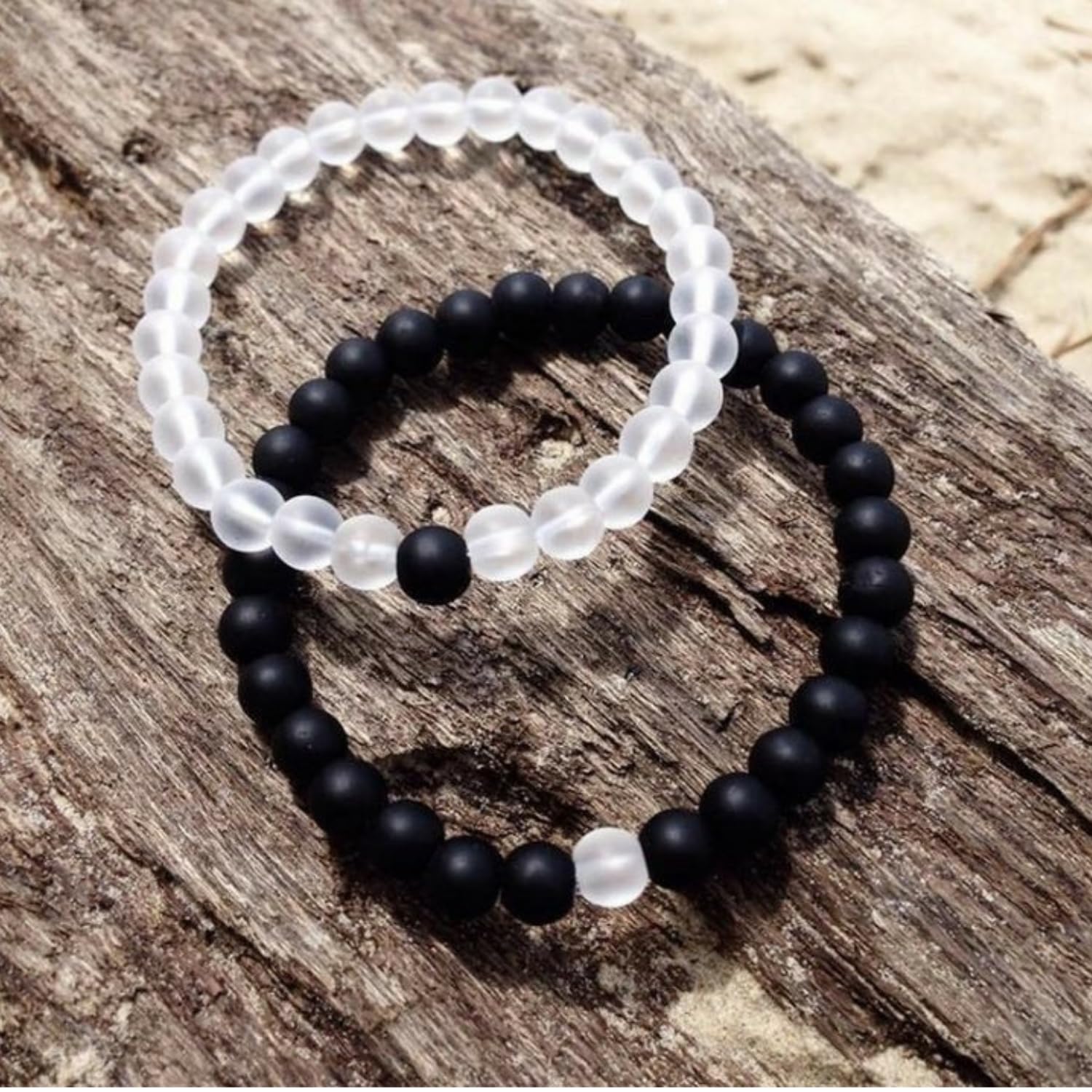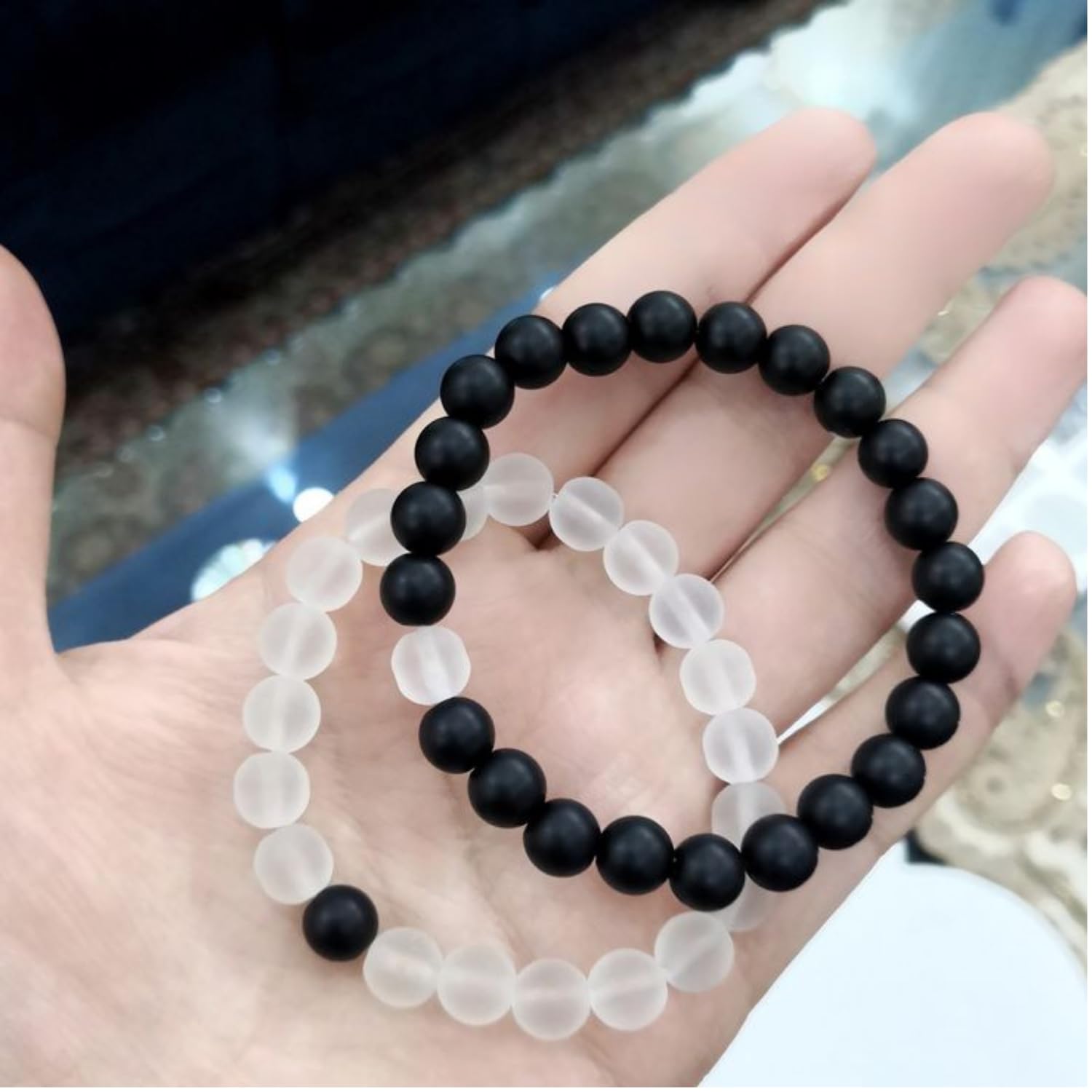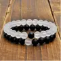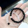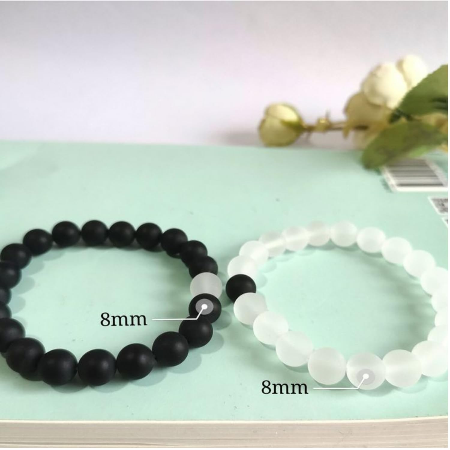 Sukhad Couple Bracelet Black Matt 8 MM Long Distance BraceletHealing Bracelet for Men & WomenRelationship Bracelet Black And Transparent Matte (pack - 2)