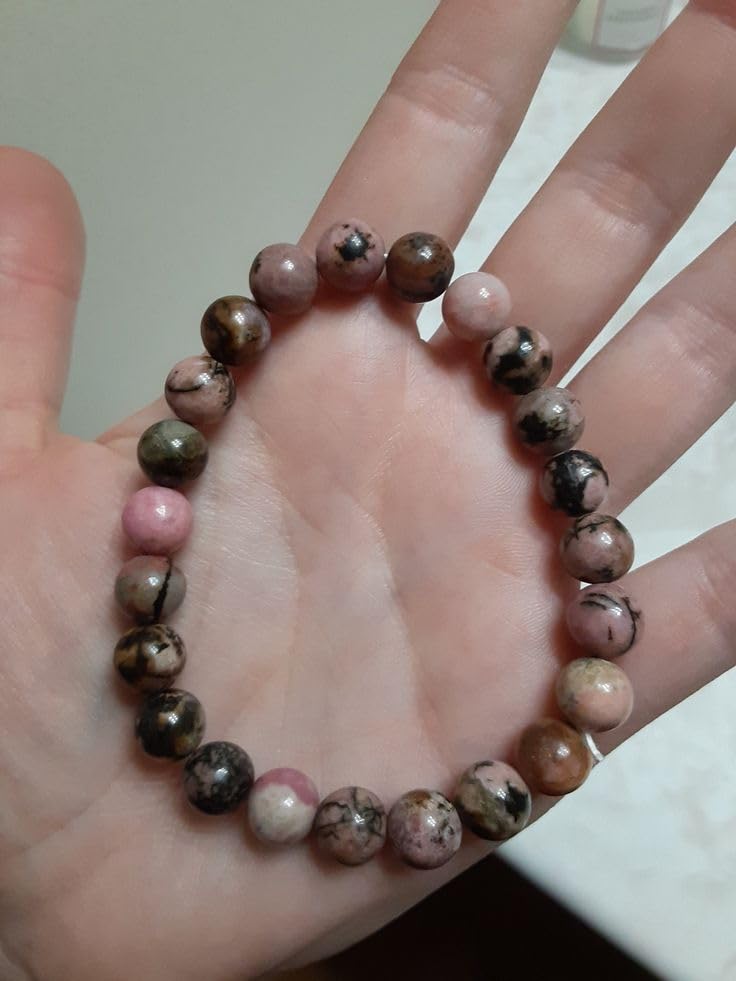 Sukhad CRYSTAL Natural Rhodonite Bracelet 8 MM For Healing Energy Stone Loving Energy Heart Chakra Self Love Compassion. Rhodonite is a stone of emotional healing love and compassion. It clears the energy away from emotional wounds or past relationships which may still be weighing you down. Rhodonite encourages you to focus on self-love self-compassion forgiveness and finding peace from within. Healing your heart is an inward journey and rhodonite makes an excellent companion!. Rhodonite is a stone of emotional healing love and compassion. It clears the energy away from emotional wounds or past relationships which may still be weighing you down. Rhodonite encourages you to focus on self-love self-compassion forgiveness and finding peace from within. Healing your heart is an inward journey and rhodonite makes an excellent companion!