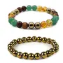 HomeFashionBraceletSukhad JEWELLERY Couple Combo Natural Citrine Pyrite Tiger Eye & Green Aventurine and Golden Pyrite Beads Bracelet Money Magnet Bracelet For Unisex (Pack of 2)