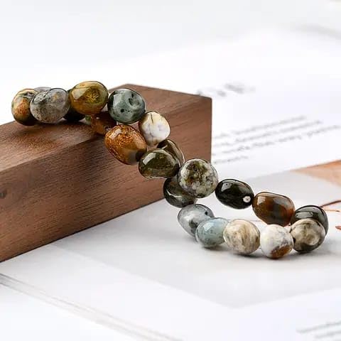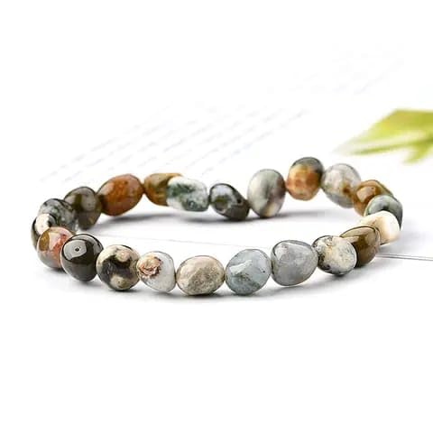 Natural Genuine Ocean Jasper Stone Healing Crystal Bracelet - Tumbled Nugget Beads Bring the serene beauty of the ocean to your wrist with our Natural Ocean Jasper Bracelet. This tumbled nugget bracelet is crafted from authentic ocean jasper stones each bead hand-selected for its unique patterns and hues. Known as a crystal of peace and stability ocean jasper is believed to foster a sense of calm and tranquility helping to ease stress and anxiety while promoting emotional balance.