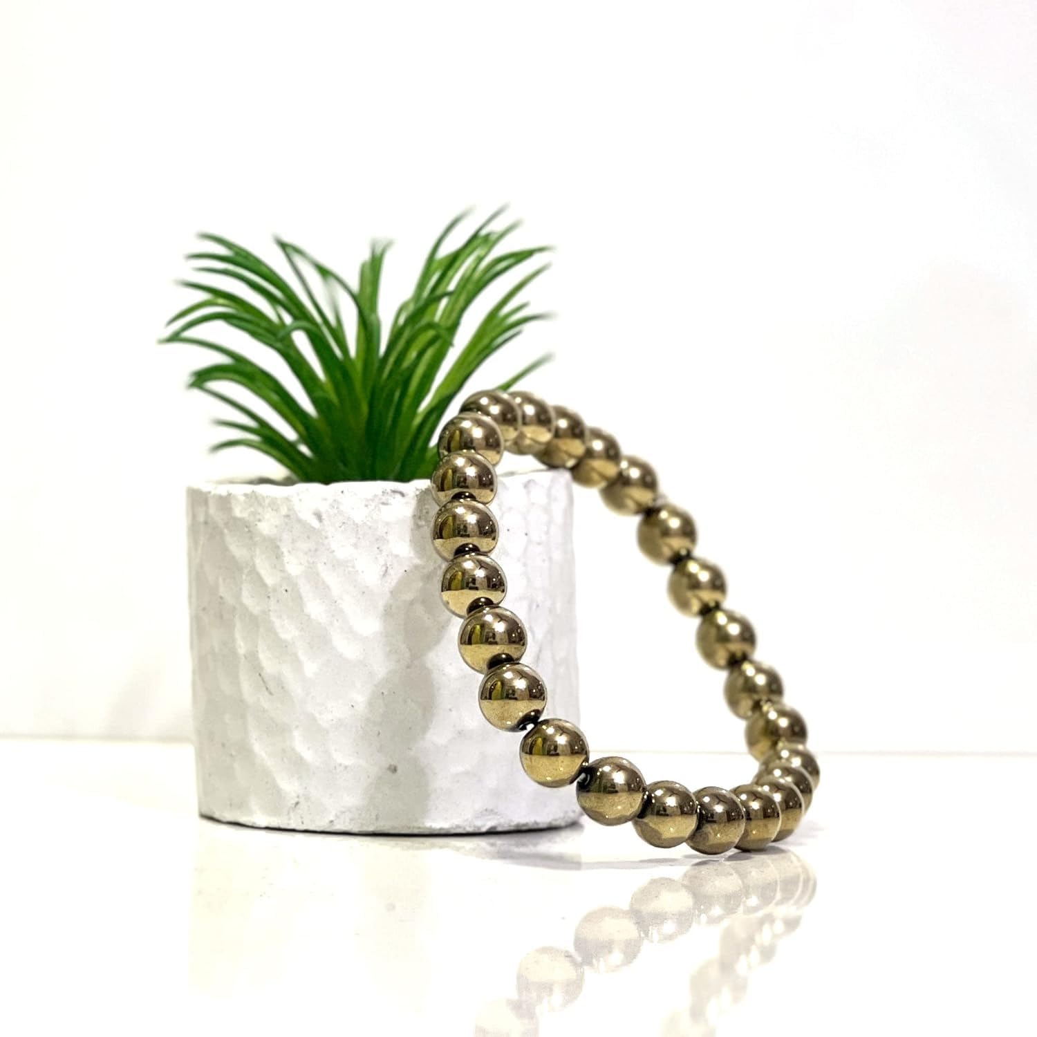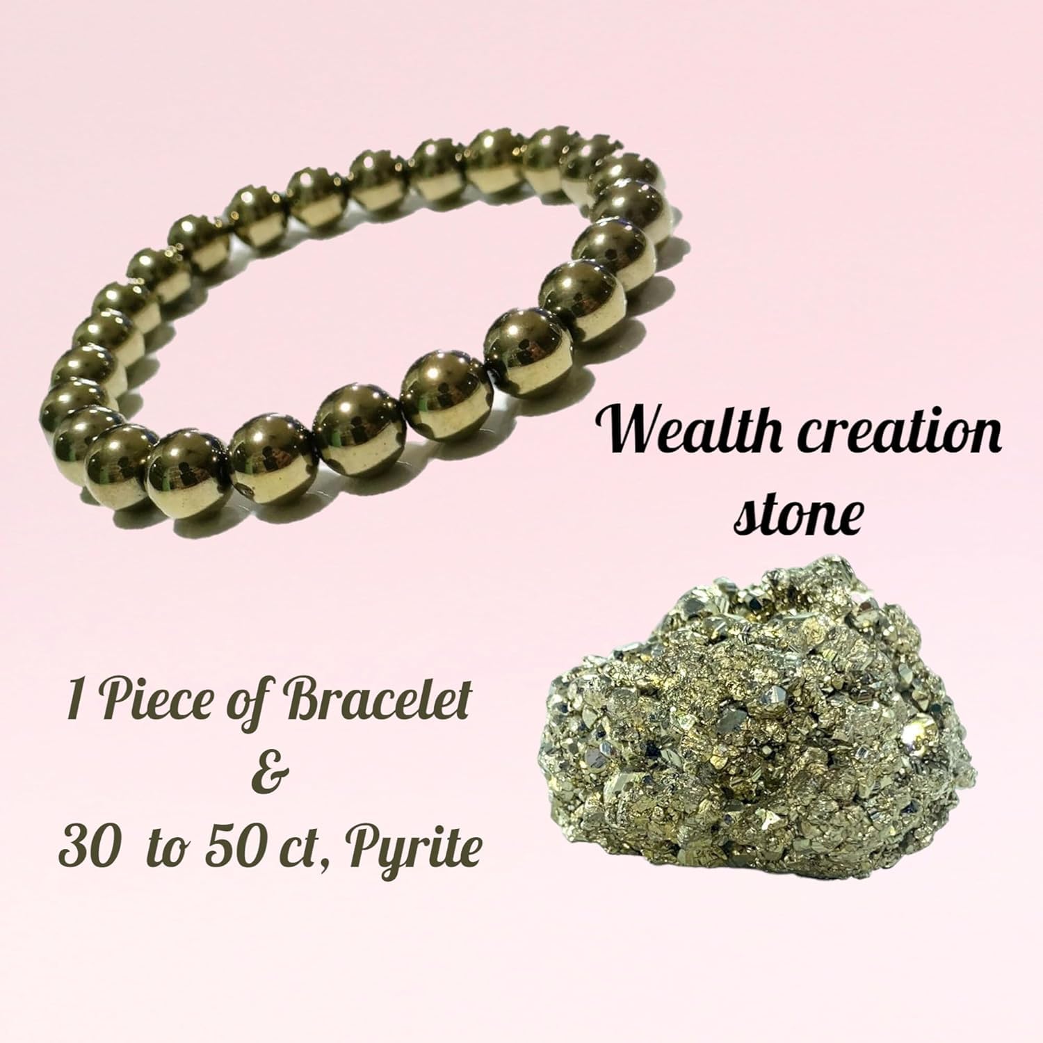 Natural Pyrite Crystal Bracelet: This bracelet features a genuine pyrite crystal known for its golden luster and unique cubic shape. Each pyrite stone is unique and may vary slightly in size and color. Unique and Stylish: Pyrite jewelry is a great way to add a touch of natural beauty to your look. The pyrite's metallic sheen makes it a versatile stone that can be dressed up or down. Adjustable Bracelet: This bracelet features an adjustable band to ensure a comfortable fit for most wrists. Metaphysical Properties: Pyrite is believed to be a stone of abundance and prosperity. It is also said to shield negative energy and promote mental clarity. Pyrite also known as fool's gold is an iron sulfide mineral with a distinctive golden luster. It is one of the most common minerals on Earth and can be found in a variety of geological settings. Pyrite crystals are often cubic in shape but they can also be found in other shapes such as octahedrons and dodecahedrons. Pyrite has been used for centuries for a variety of purposes. In ancient times it was used as a fire starter because it can create sparks when struck against steel. Pyrite was also used in jewelry and other decorative objects.