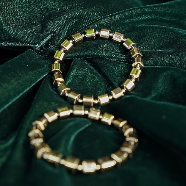 Sukhad Natural Pyrite Cube Beaded Stretch Bracelet Golden Metallic