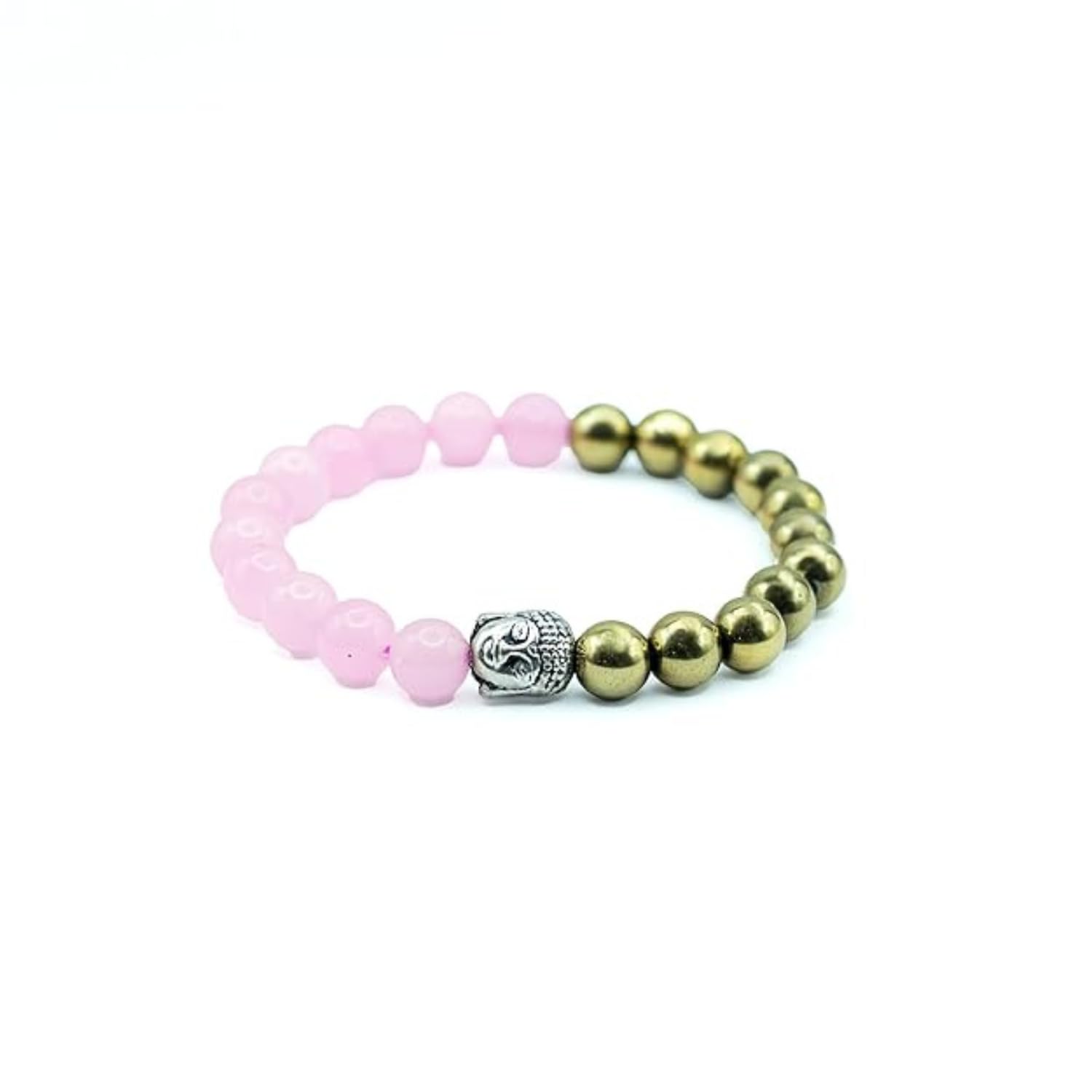 Unlock the Power of Wealth & Love with the Sukhad Golden Pyrite & Rose Quartz Money Magnet Bracelet Elevate your energy and attract abundance success and love with this beautifully handcrafted Golden Pyrite with Rose Quartz Money Magnet Bracelet. Designed for both men and women this high-vibrational gemstone bracelet combines the wealth-attracting energy of Golden Pyrite with the heart-centered healing of Rose Quartz making it the ultimate tool for manifesting financial success while nurturing relationships. Golden Pyrite The Money Magnet Stone Golden Pyrite often called âFools Goldâ is a powerful manifestation stone known for its ability to attract wealth financial stability and career success. It enhances willpower determination and confidence helping you make bold financial decisions and turn opportunities into reality. Rose Quartz The Stone of Love & Harmony Known as the Universal Stone of Love Rose Quartz promotes self-love emotional balance and harmonious relationships. It removes emotional blockages and aligns your heart chakra helping you make financial choices rooted in clarity and confidence rather than fear or doubt.