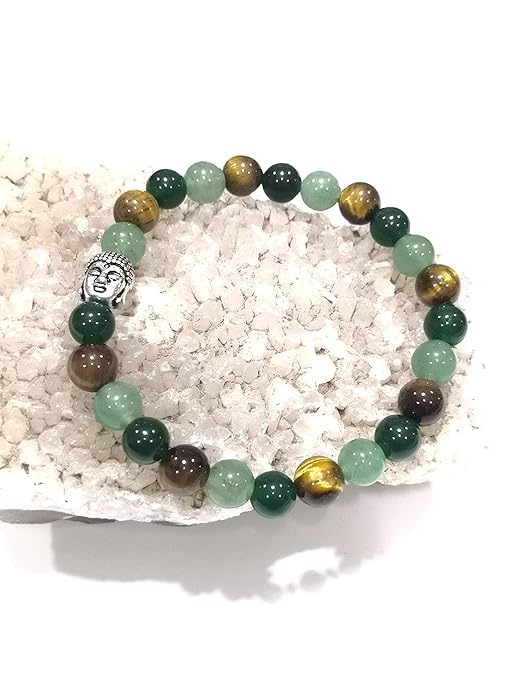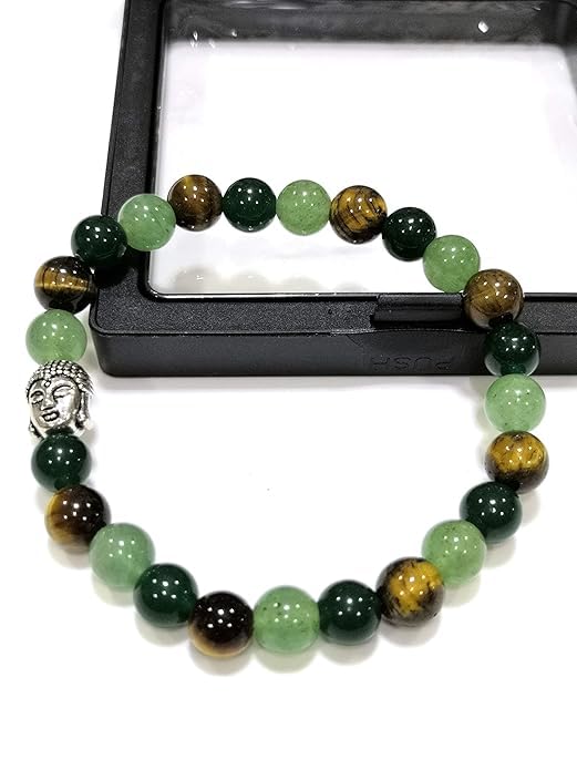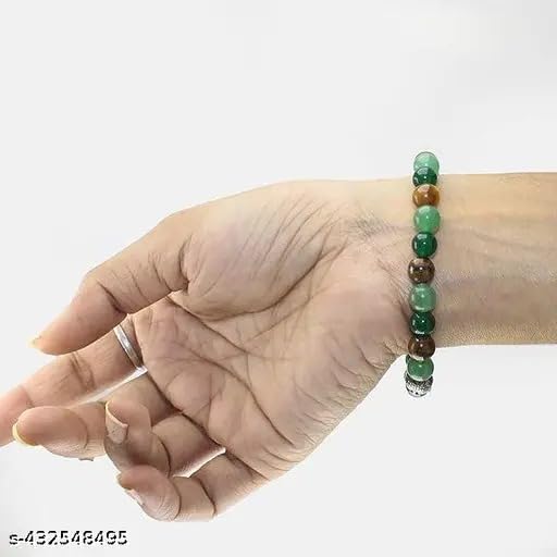 Unlock the power of prosperity and success with the Sukhad Prosperity and Success Crystal Gemstone Bracelet. This exquisite piece combines the energies of Green Aventurine Tiger Eye and Jade creating a harmonious blend that attracts abundance and good fortune. The Green Aventurine promotes emotional balance Tiger Eye cultivates self-confidence and willpower while Jade encourages wealth and harmony. Meticulously crafted for both men and women this bracelet serves as a stylish accessory and a powerful talisman. Adorn your wrist with this captivating gemstone bracelet and embrace the journey towards prosperity and success. Handcrafted with precision and care this bracelet is a true embodiment of timeless elegance and spiritual significance.