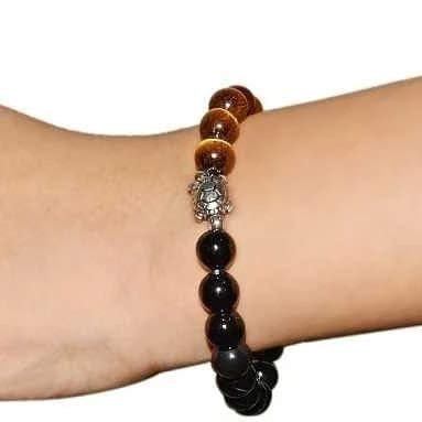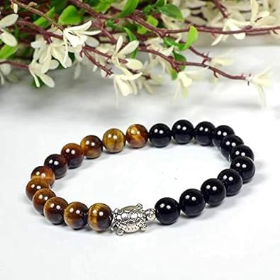 Stretchable Elastic Handmade Tiger Eye with Black Tourmaline Bracelet | Diameter: 7.5 inches. Stone Size - 8 mm | Shape - Reiki Healing Crystal Healing Numerology Tarot Astrology & Feng Shui Natural Tiger Eye Black Tourmaline Healing Stone / Crystal with Black Tourmaline Healing Stone / Crystal - Small holes cracks on the surface or inside the stones. Marks are often visible Material: Natural Healing Stones Tiger Eye with Black Tourmaline View Images & Product Description Healing Properties/Benefits Stylish Party-Daily-Office-Casual Wear Reiki Healing Stone Bracelet for Men Women Boys Girls . Best for gifting and personal use. Charged by Reiki Grand Master and Vastu Expert Made with high-quality tiger eye and black tourmaline beads this bracelet is both stylish and meaningful. The tiger eye beads are a beautiful brown color with a chatoyant sheen while the black tourmaline beads add a touch of sophistication. The turtle charm is made of a silver-colored metal and features intricate details. This bracelet is sure to become a cherished favorite.