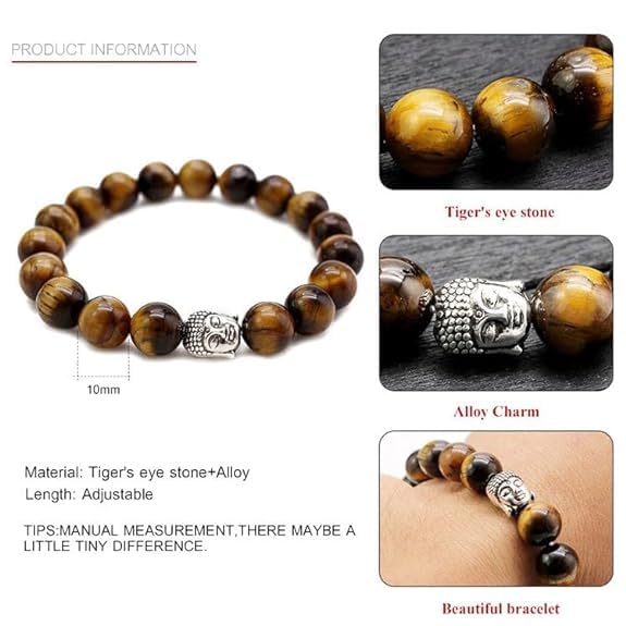 PRODUCT DETAILS Handmade item I Material: Gemstone I Gemstone: Tiger Eye I Style: Boho & Hippie I Bead size 8 MM I For both men and women I Unisex bracelet jewelery I Standard size and fits most. Crystal jewelery is a timeless and elegant addition to anyone's accessory collection but it is much more than just a treat for the eyes. In addition to being beautiful wearable crystals and gemstones can help you receive physical spiritual emotional and mental healing benefits by working with our chakras. Great for meditation crystal healing reiki or just to wear! Wearing your stones is a great way to keep them close to you and refresh yourself. Crystal jewelry is a great way to integrate the power of crystals into your life especially if you don't have time to meditate with your crystals every day. When you work hard and visualize your success it will bring you good luck. It can increase the energy you bring to your activities so it will also attract good luck. Tiger Eye will work to make your will and intentions successful. Each crystal has its own unique characteristics and properties. And it has different effects on different people. Its therapeutic effects cannot be guaranteed. Information about kidney stones is based on experience and research and is not admissible for any medical purposes.
