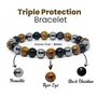 Triple Protection Bracelet with Lab Certificate for Men and Women - Natural Energised Tiger Eye Stone Black Obsidian Hematite Stone for Power Protection Good Luck - 8MM Beads (TP-0029CT
