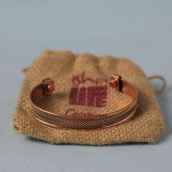 An elegant accessory that is crafted of copper, the offering features an adjustable design that can fit all sizes.The interesting two-finish combination of brass and copper lends the accessory a charming, yet understated appeal. Packed in a beautiful just pouch, this copper accessory also makes a great gift for your loved one this festive season.