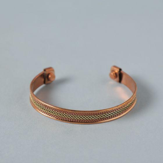 Two-tone copper cuff. Adjustable copper cuff featuring a copper/brass finish combination.