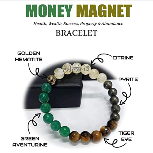 EDMIRIA Money Magnet Bracelet - Green Aventurine Citrine Clear Quartz Tiger Eye Amethyst Pyrite Garnet for Wealth Income Abundance & Prosperity- Healing Natural Gemstone Reiki Bracelet for Men & Women Crystals Used: Citrine Green Aventurine Pyrite Red Garnet Amethyst Citrine & Tiger Eye Wearing a Money Attracting Crystal Bracelet is very useful for Sales Persons Professionals and Business Owners. Combination of different Money Attracting Stone are used to Attract More Money Wealth Prosperity and Success for You. Money Magnet Bracelets were designed using numerology and crystal energy to create the ideal combination to bring wealth into your life. It is made with the most powerful crystals for money and prosperity repeated in patterns of different beads to attract abundance in your life