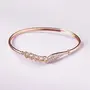 Trendy brass bracelet with rose gold plating. Zircons adorned and a good match for formal attire.