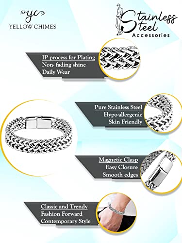 STYLE- Stainless Steel Link chain modern style latest design Bracelet giving a nice combination overall which is nice to wear will go beautifully with any of your attire. IPS PLATING: A new technology using deposition in vacuum and high temperature. Steel is coated using this technique that produces an intimate surface melting. The result is very attractive durable and anti-allergic. IPS process of plating makes it never fading of color and keeps the shine if it is taken care.