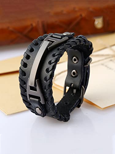 Yellow Chimes Multi Strand Leather Wrap Wrist Bracelet for Men and Women M Leather No Gemstone