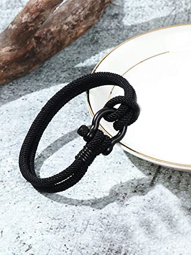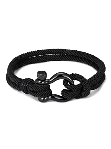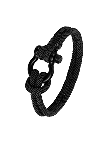 Yellow Chimes Rope Bracelet for Mens Black Shackle Handmade Anchor Bracelet for Mens and Boys One Size Faux Leather No Gemstone