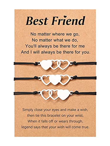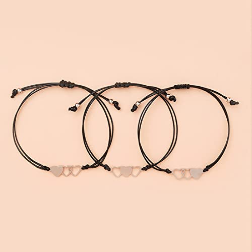 Yellow Chimes Women's Combo Bracelets Set Of 3 -Toned & Black Heart Shaped Best Friends And Girls One Size Silver