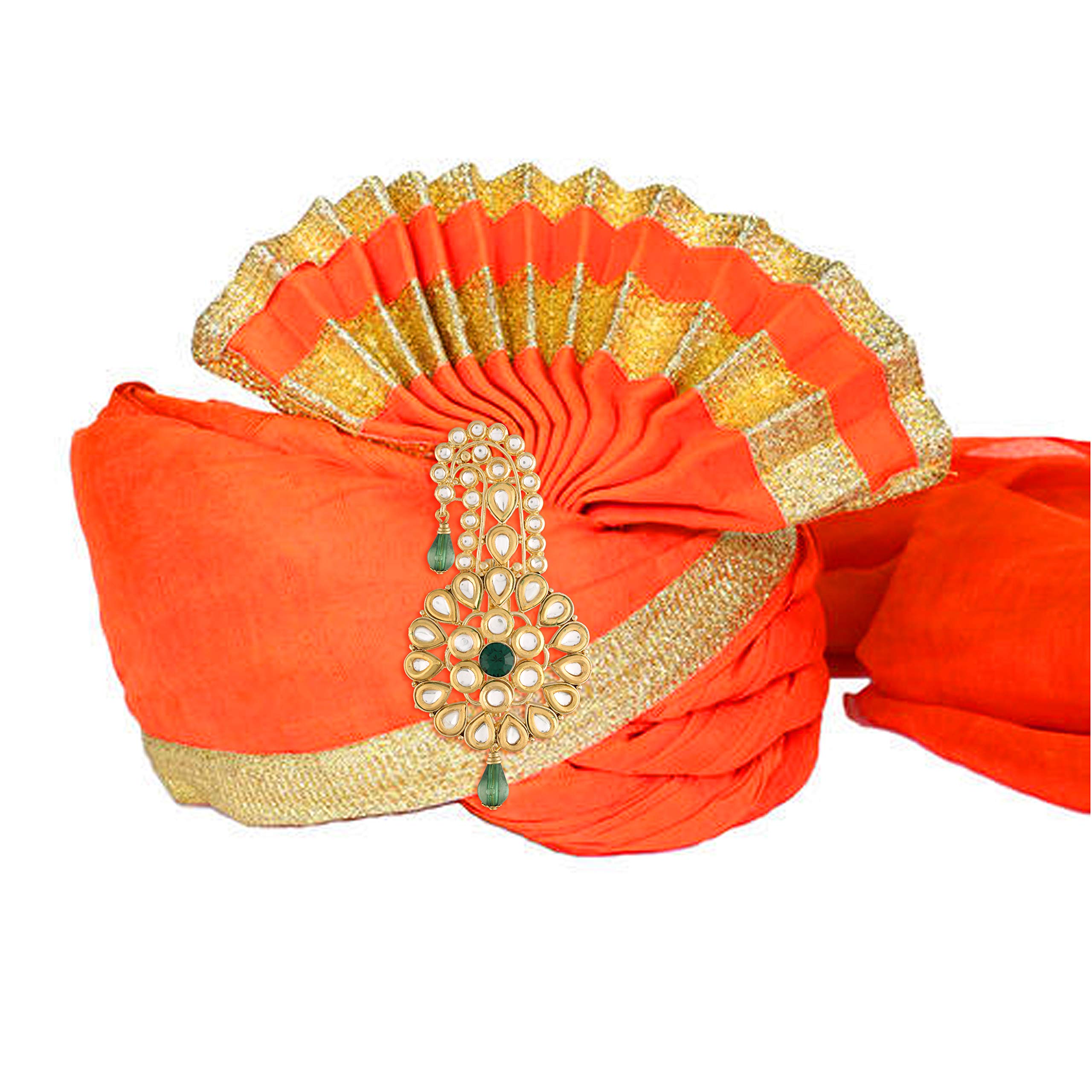 I Jewels Gold Plated Traditional Kundan Safa Kalangi Brooch for Groom/Men/Dulha Pagadi (SM54)
