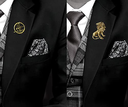 Mahi Combo of Lion and Woodpicker Shaped Wedding Brooch / Lapel Pin for Men (CO1105516G), 4cm x 4.2cm, Metal
