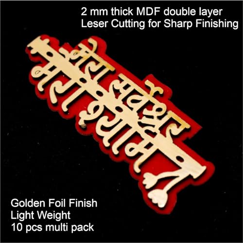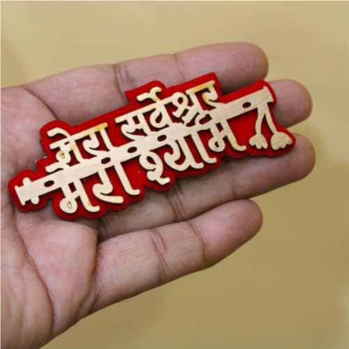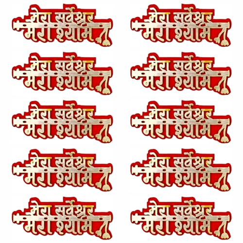 MERA SARWESHWAR MERA SHYAM wood brooch pack of 10 pcs. for religious get-together and programme. This made on MDF Wood Base. Golden foil on Top.