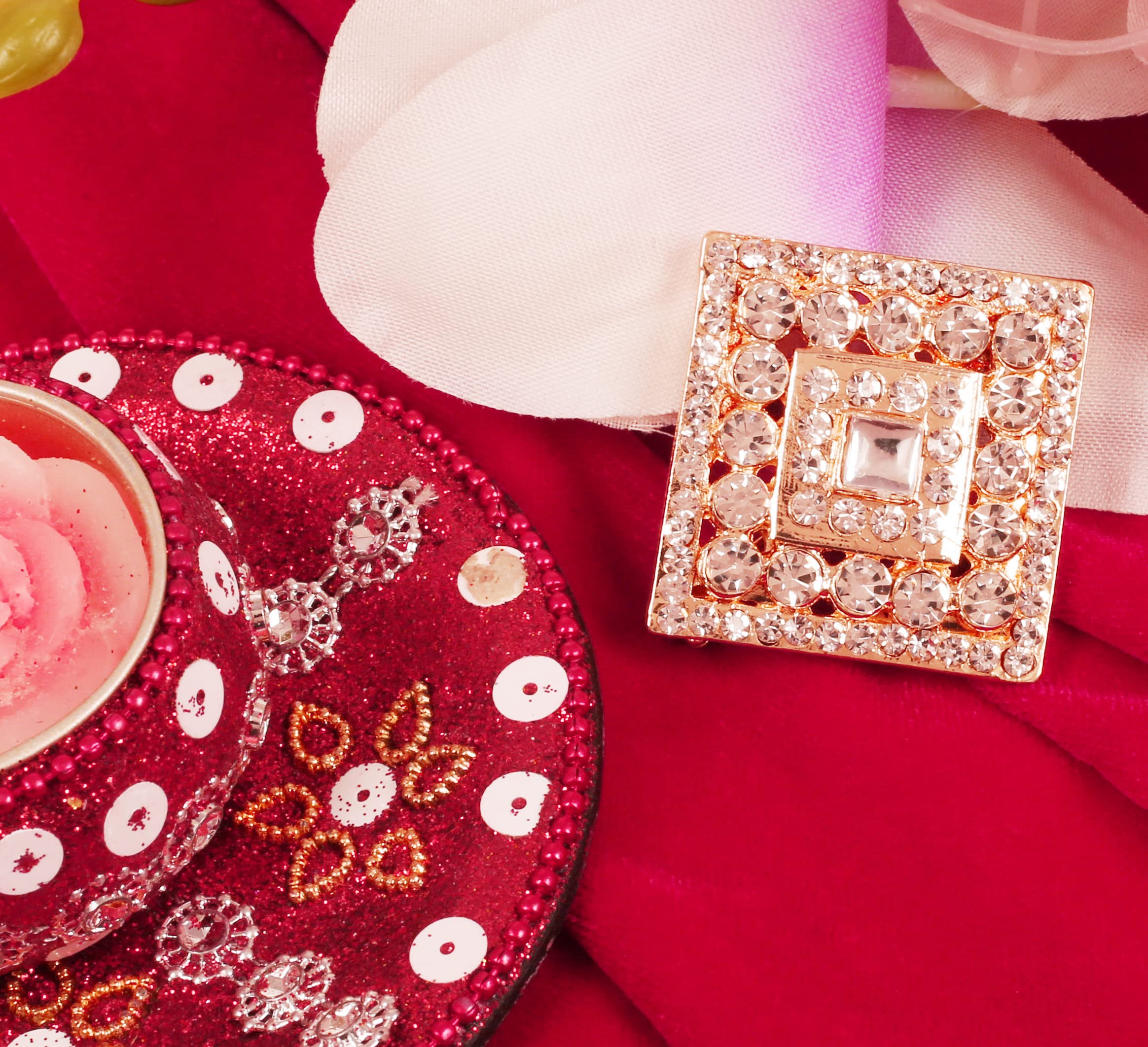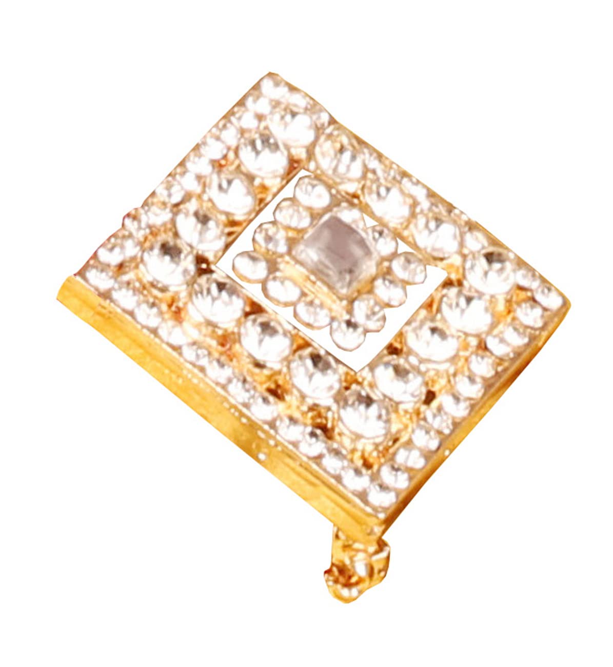 NEW! Touchstone Indian Bollywood Romance Traditional Marvelous Look Crafted Rhinestone Kundan Look Vintage Designer Jewelry Rhombus Shape Brooch In Gold Tone For Women.
