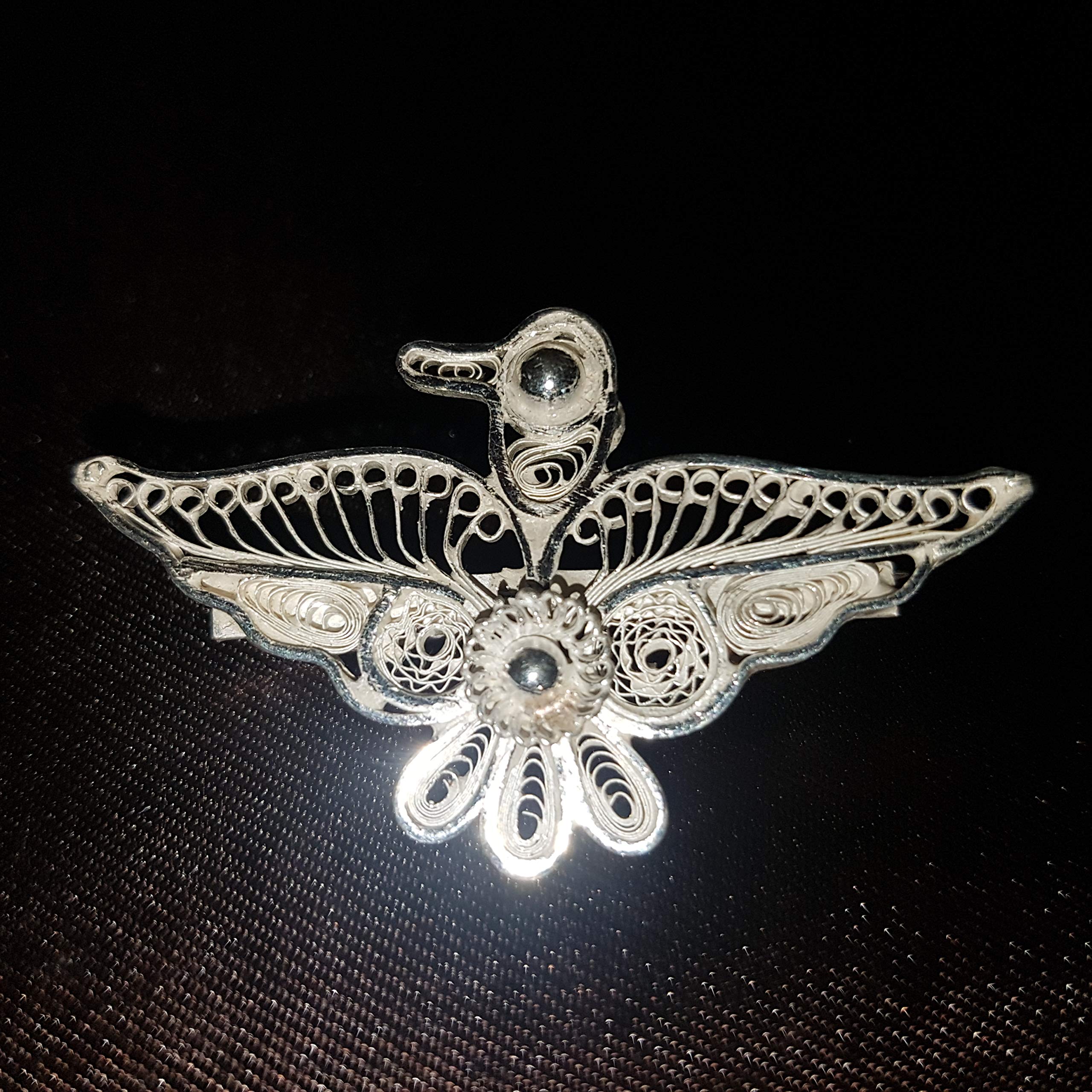 Beautifully hand-crafted silver filigree Brooch suitable for all occasions.Tarakasi or Silver Filigree is one of the most exquisite renditions of silver craft. Presently the main hub for silver filigree is Cuttack in Odisha known for its world-class craftsmanship.This particular brooch is a fusion of traditional and modern design suitable for sarees ethnic dresses as well as western outfits.