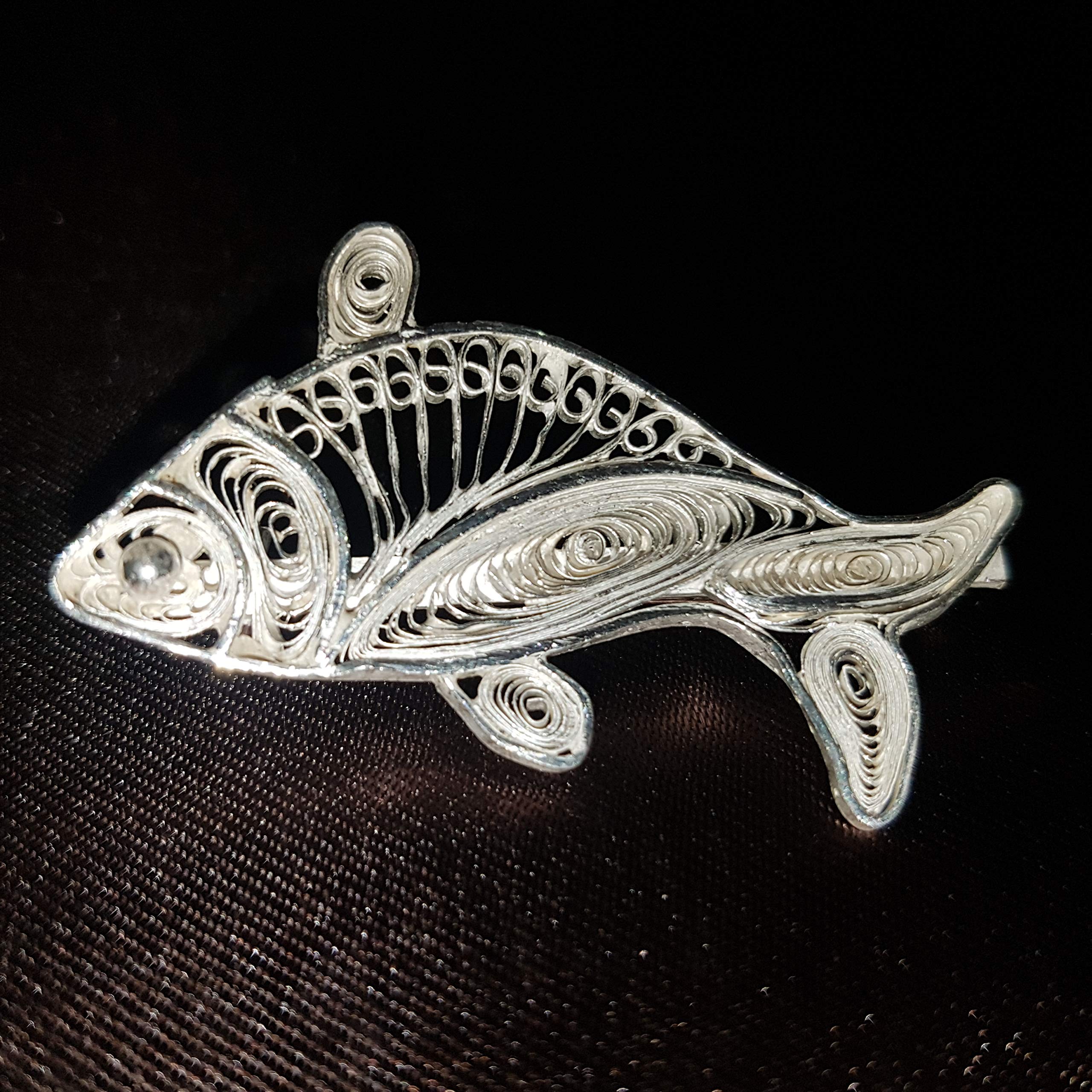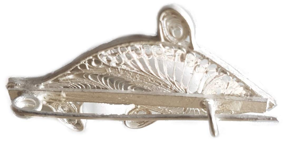 Beautifully hand-crafted silver filigree Brooch suitable for all occasions.Tarakasi or Silver Filigree is one of the most exquisite renditions of silver craft. Presently the main hub for silver filigree is Cuttack in Odisha known for its world-class craftsmanship.This particular brooch is a fusion of traditional and modern design suitable for sarees ethnic dresses as well as western outfits.