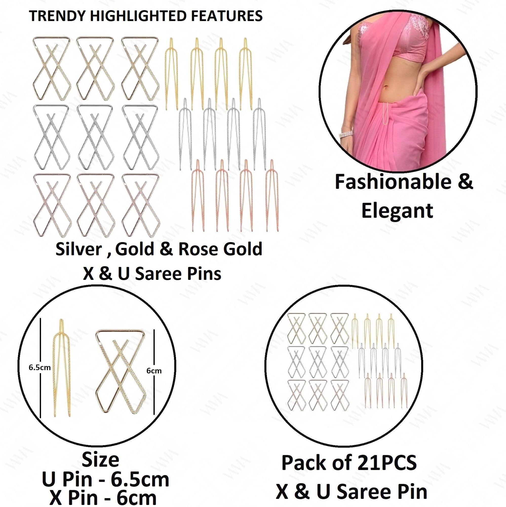 VAMA FASHIONS Clip on Sarees Pleats Pin Brooch Coat Dress Gown Shawl Bridal Safety Saree Pins for Women