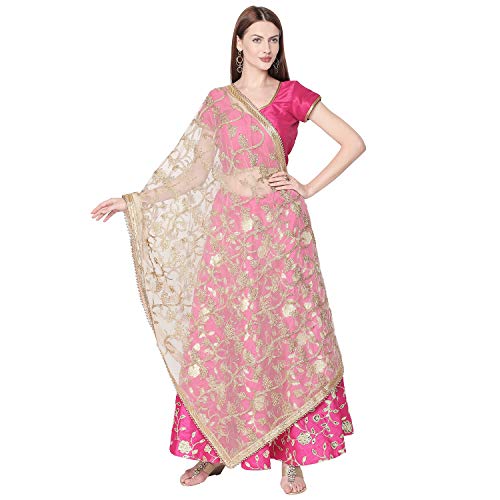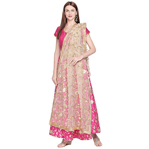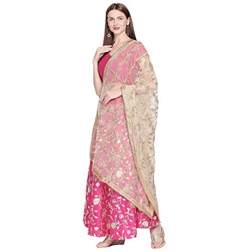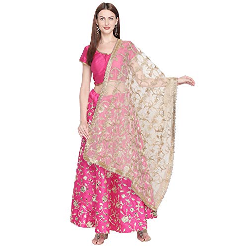 DUPATTA BAZAAR Woman's Embroidered White & Gold Net Dupatta.