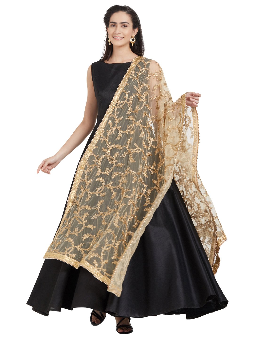 DUPATTA BAZAAR Woman's Gold Embroidered Net Dupatta