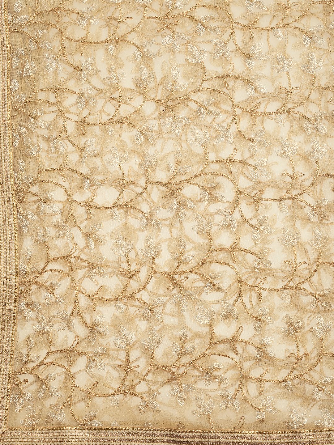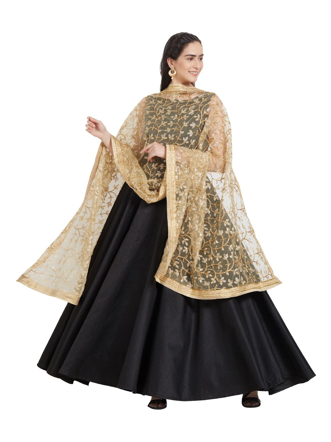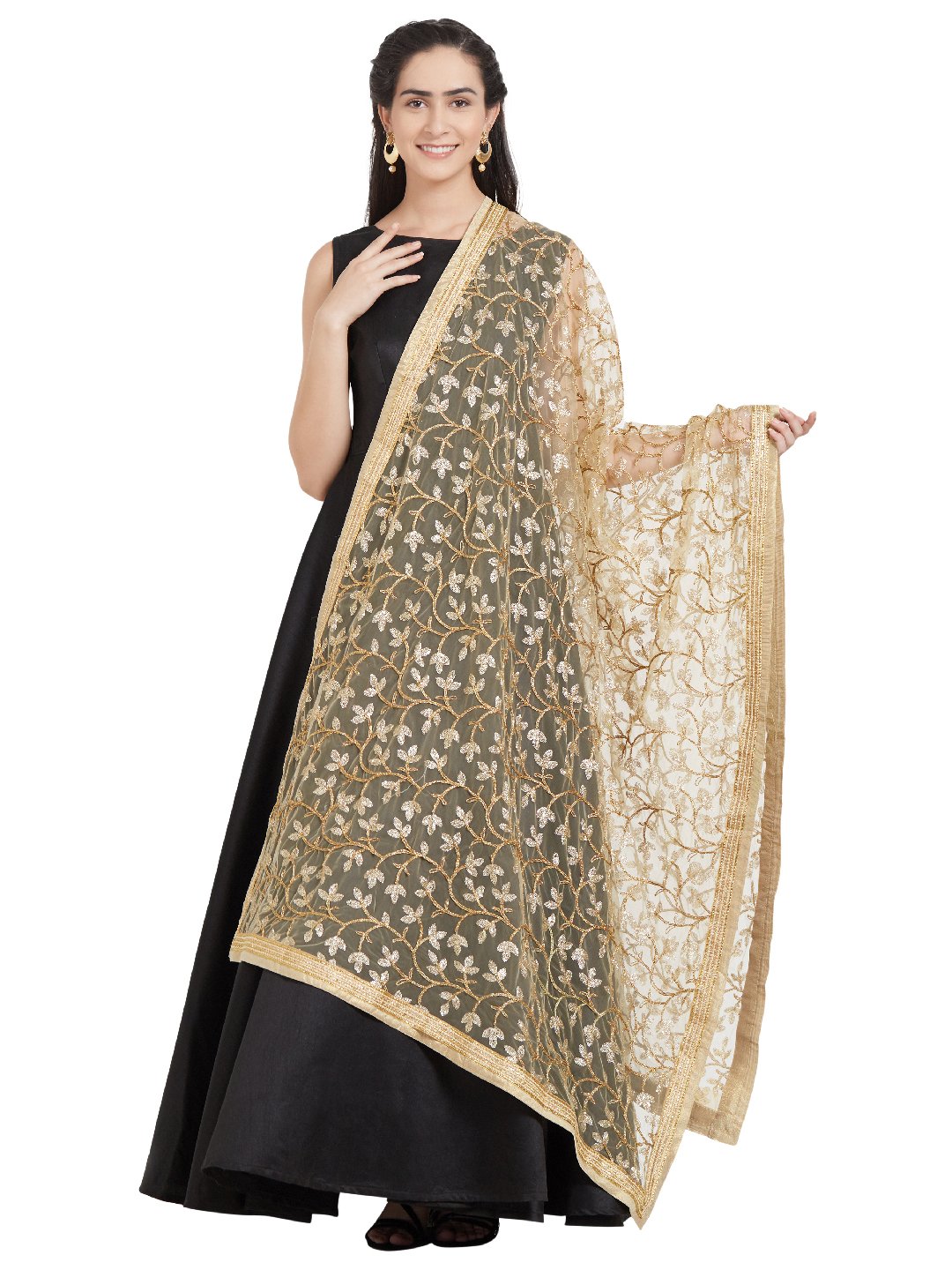 DUPATTA BAZAAR Woman's Gold Embroidered Net Dupatta