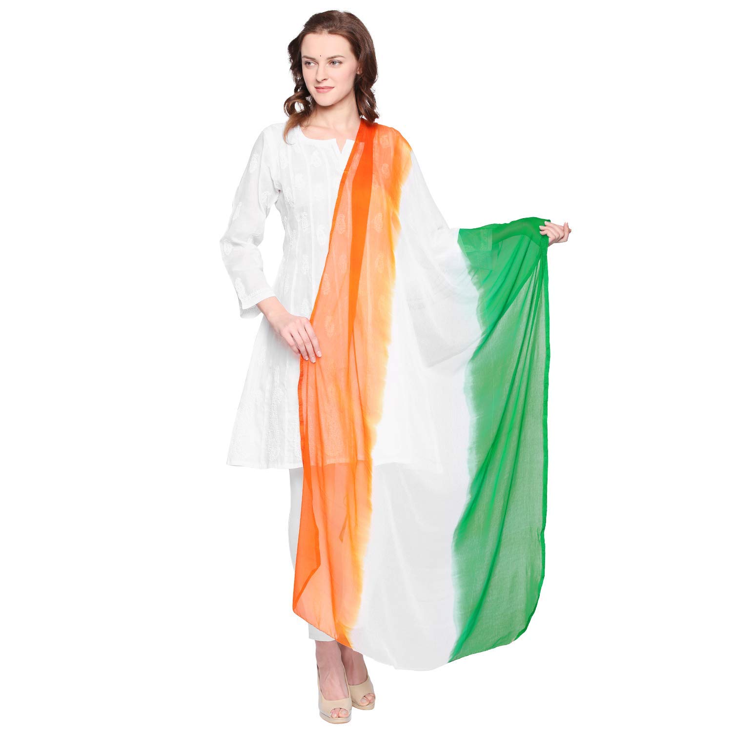 Celebrate the spirit of freedom with this divine tri colour dupatta on this Independence day. Drape it up like a dupatta with white kurta or just tag it along like a stole with a top.