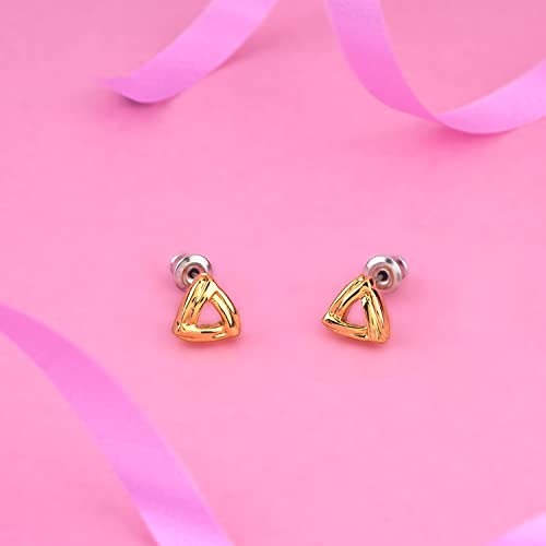 HomeFashionEarrings24 Kt Gold Plated Ribbed Triangle Stud Earrings For Girls Suitable for All Occasions Gift for Wedding Engagement Anniversary and Birthday