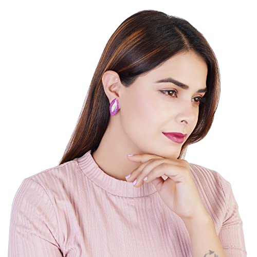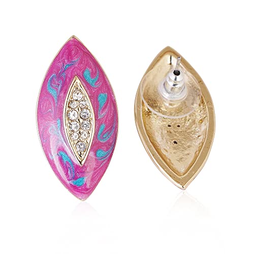 24Kt Gold And Silver Plated Oval Shaped Enamel Stud Earrings For Women
