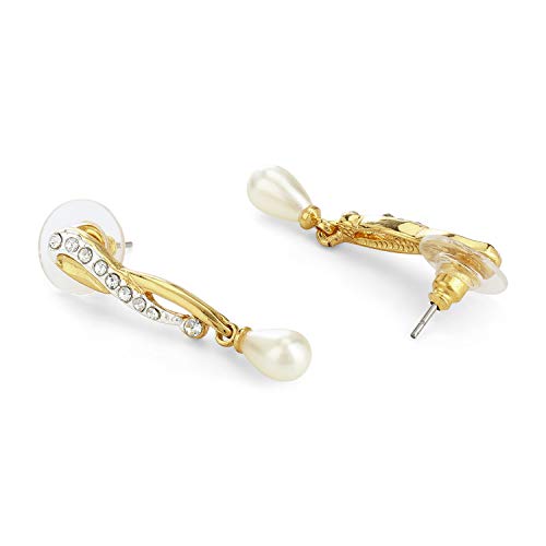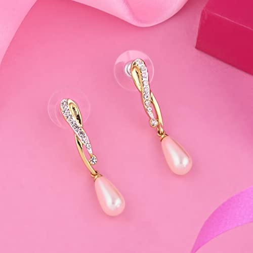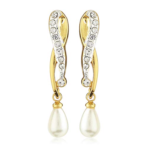 24Kt Gold And Silver Tone Plated White Bead Drop Earrings For Women & Girls