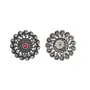 Stud earrings made from brass and embellished with round cut white and red stones. Oxidised silver plated and good for casual looks.