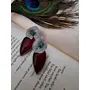 Binnis wardrobe Silver toned Red stone studded drop beautiful Textured leaf Earrings (Red)